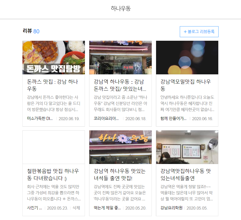 그리고 이걸 하면서 느낀건데, 제가 맛집이라고 생각했던 곳은 후기가 200개 정도 등록되어 있고, 괜찮다고 생각한 곳은 100개 정도있었어요 ㅎ