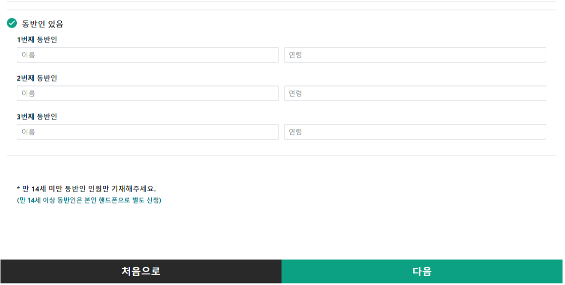 14세 미만 아동을 동반하고 가시는 분들을 위해서 동반인 여부를 확인하는 것이 있었어요.