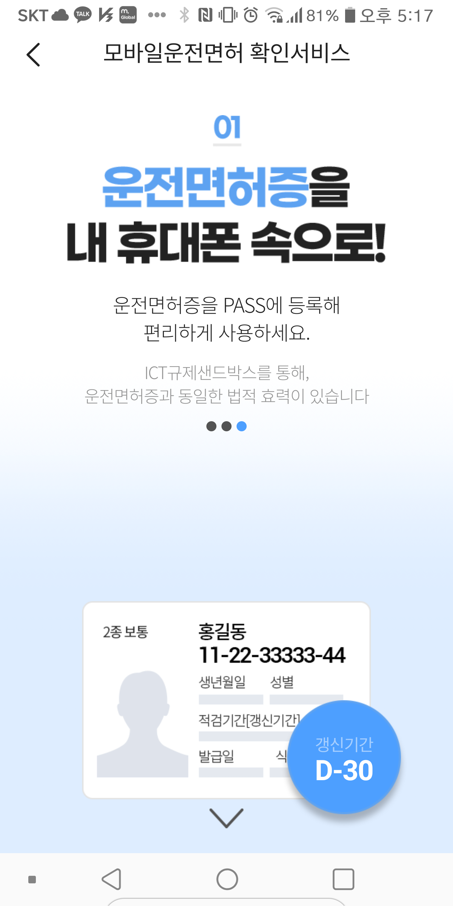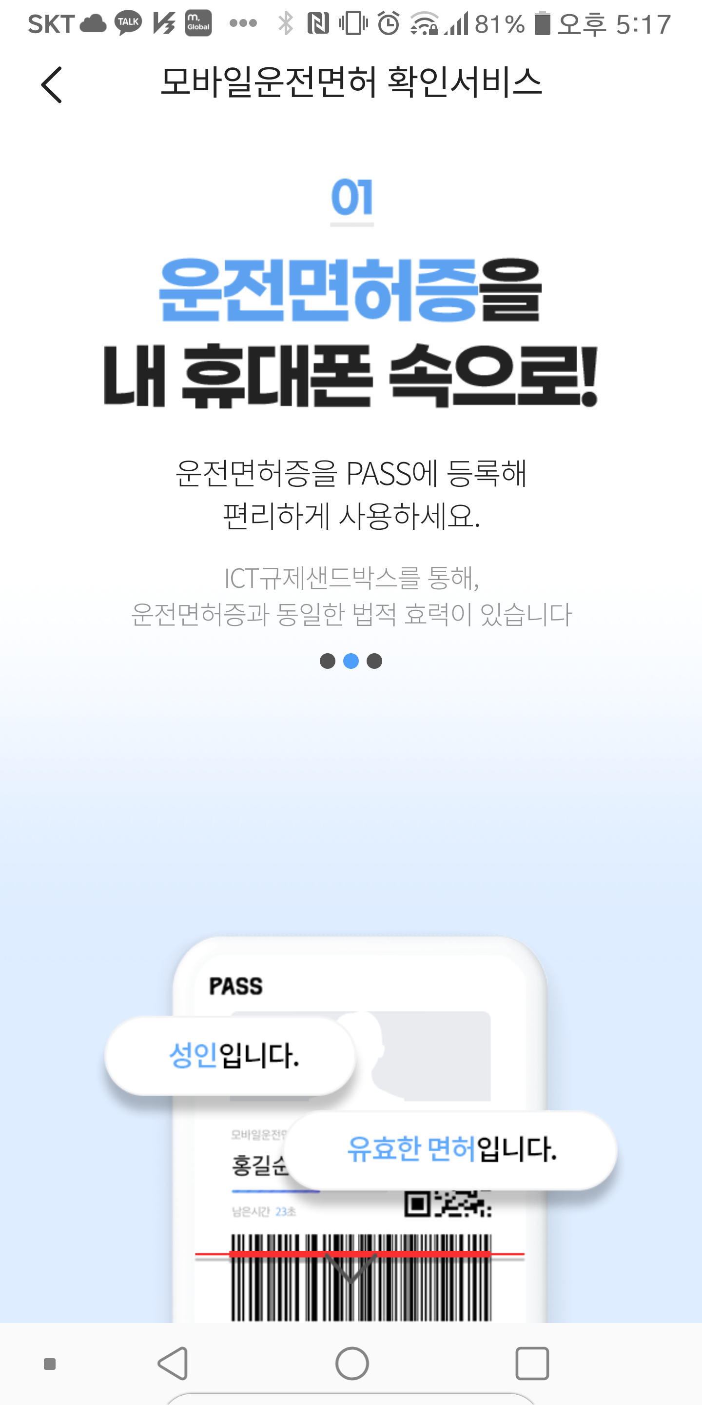 운전면허증 등록후에 앱 실행하면, "모바일운전면허확인"이라고 있어요