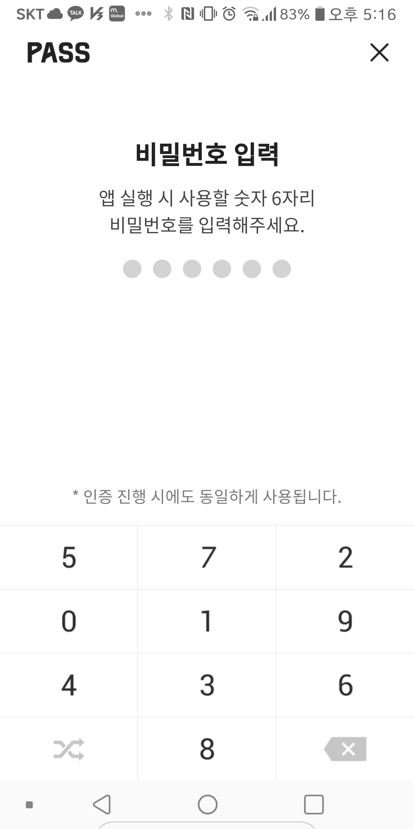 설치하고 나서 개인 정보 인증하고 나니 비밀번호를 설정하라고 합니다.