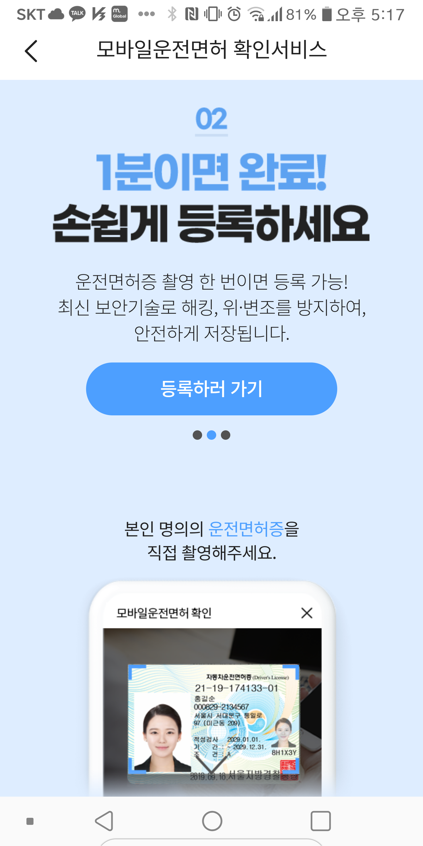 이렇게 어렵지 않게 운전면허증을 핸드폰으로 옮겨보았습니다 :)