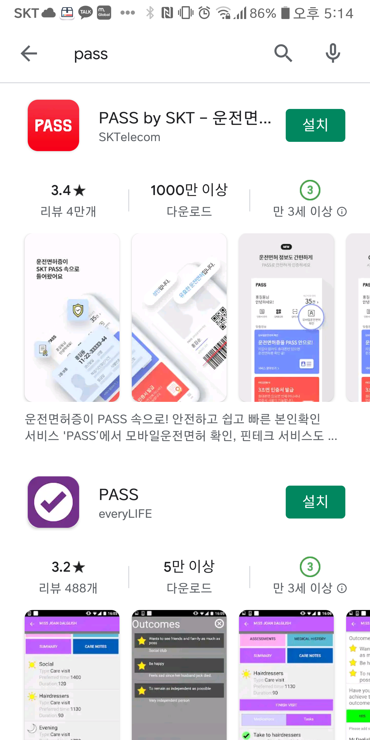 전 안드로이드 기반 핸드폰이라, 구글 플레이에서 pass로 검색하니 바로 나왔어요