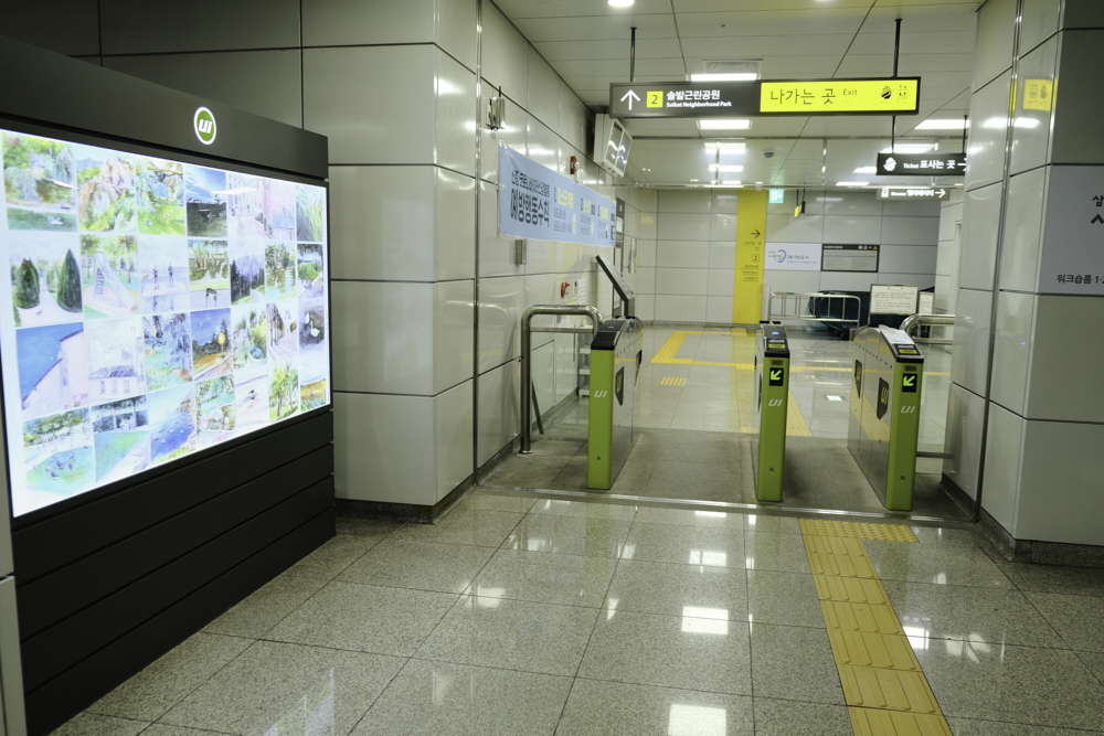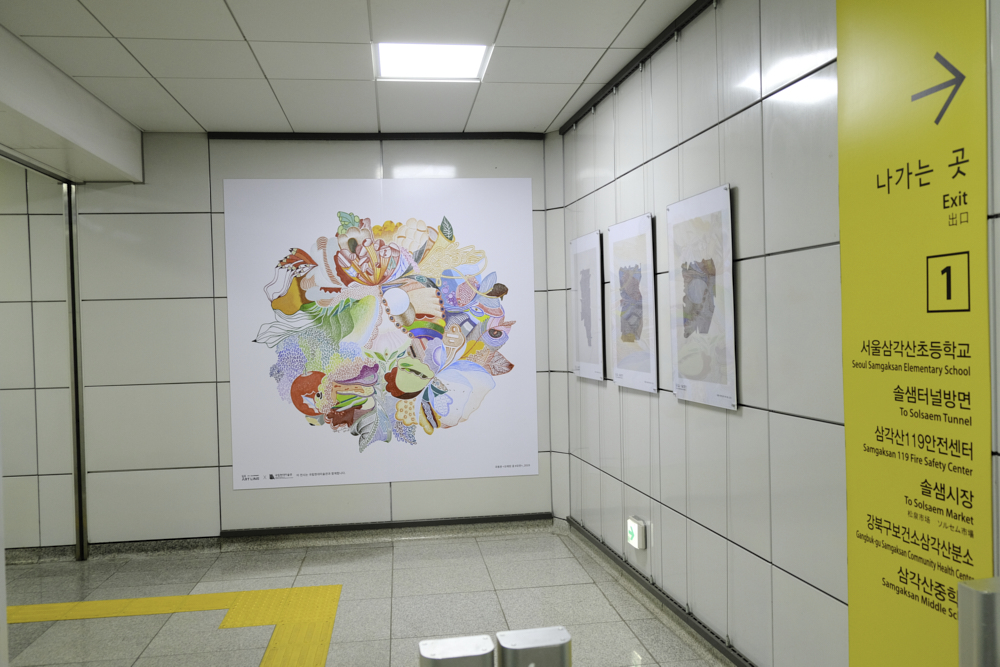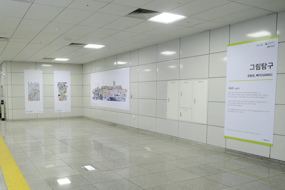 솔샘역에는 국립현대 미술관 창동레지던시에서 진행하는 빠키와 국동완 두명의 작가 작품들이 전시되어 있었어요.