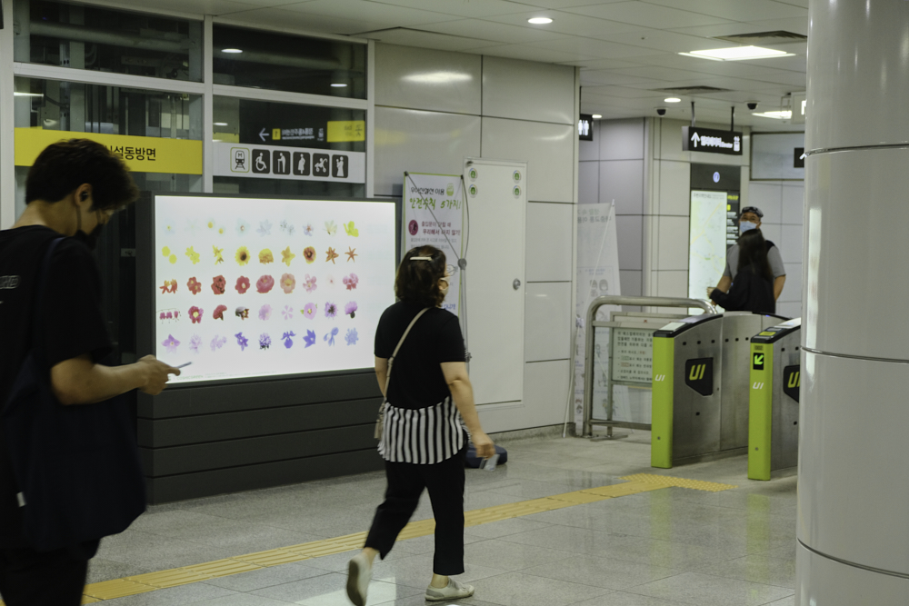 3개역에서는 동일한 주제로 전시가 진행 중이였어요. 꽃으로 주는 메세지들을 담은 작품들이었어요.