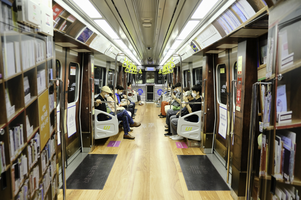 지하철 안을 도서관처럼 랩핑을 하셨더라구요 (랩핑만한거지 실제 책은 아닙니다 ㅎ)