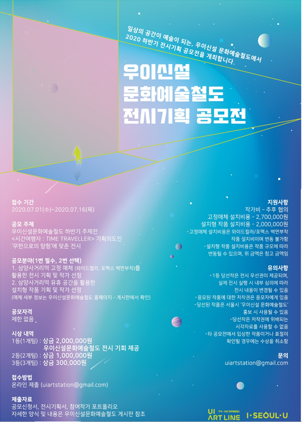 ○ 공모주제 : 우이신설 문화예술철도 하반기 주제전 <시간여행자 : TIME TRAVELLER> 기획의도인 ‘무한으로의 탐험’에 맞춘 전시
