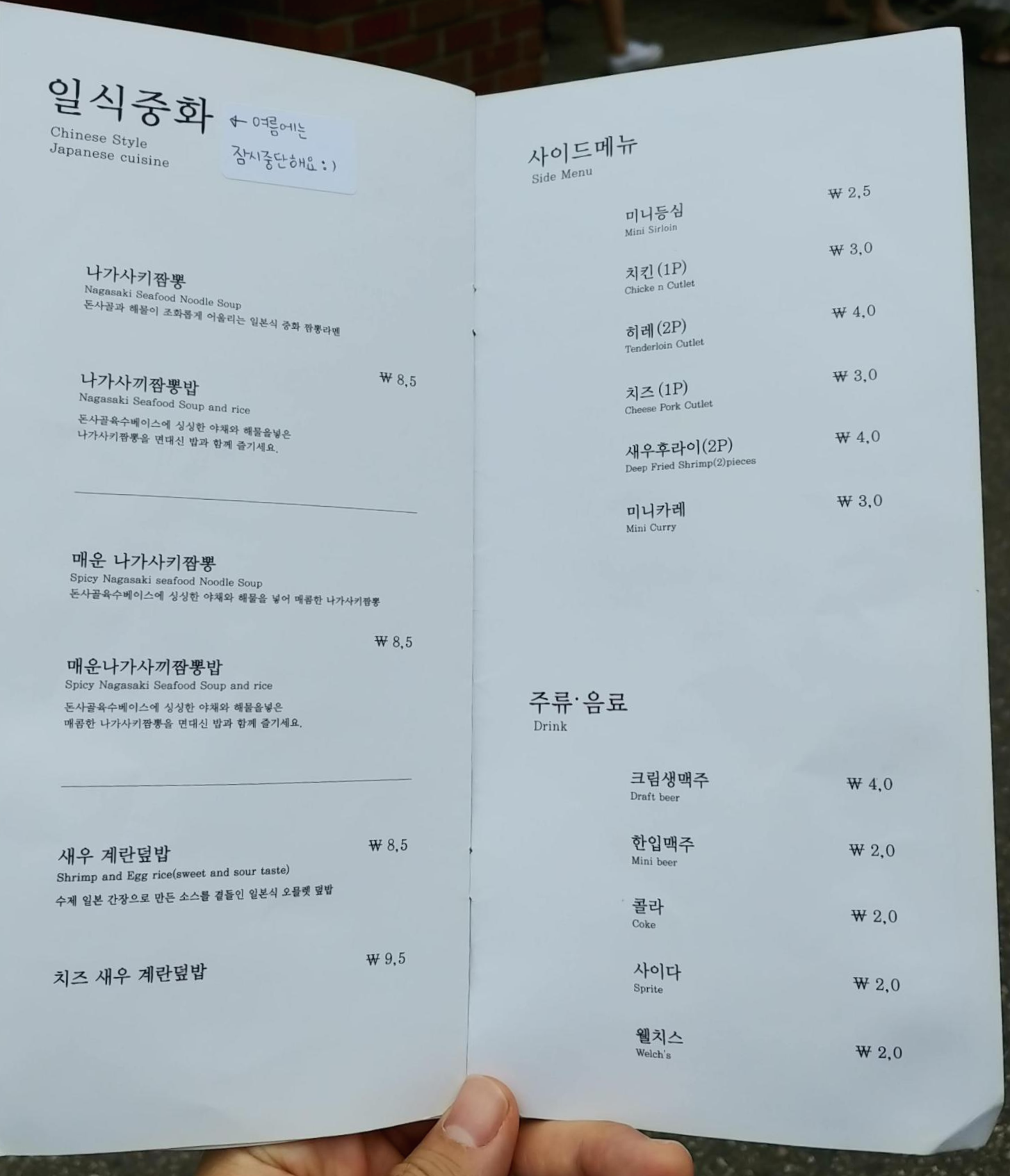 메뉴 사진 아래에 첨부하니 참고하세요