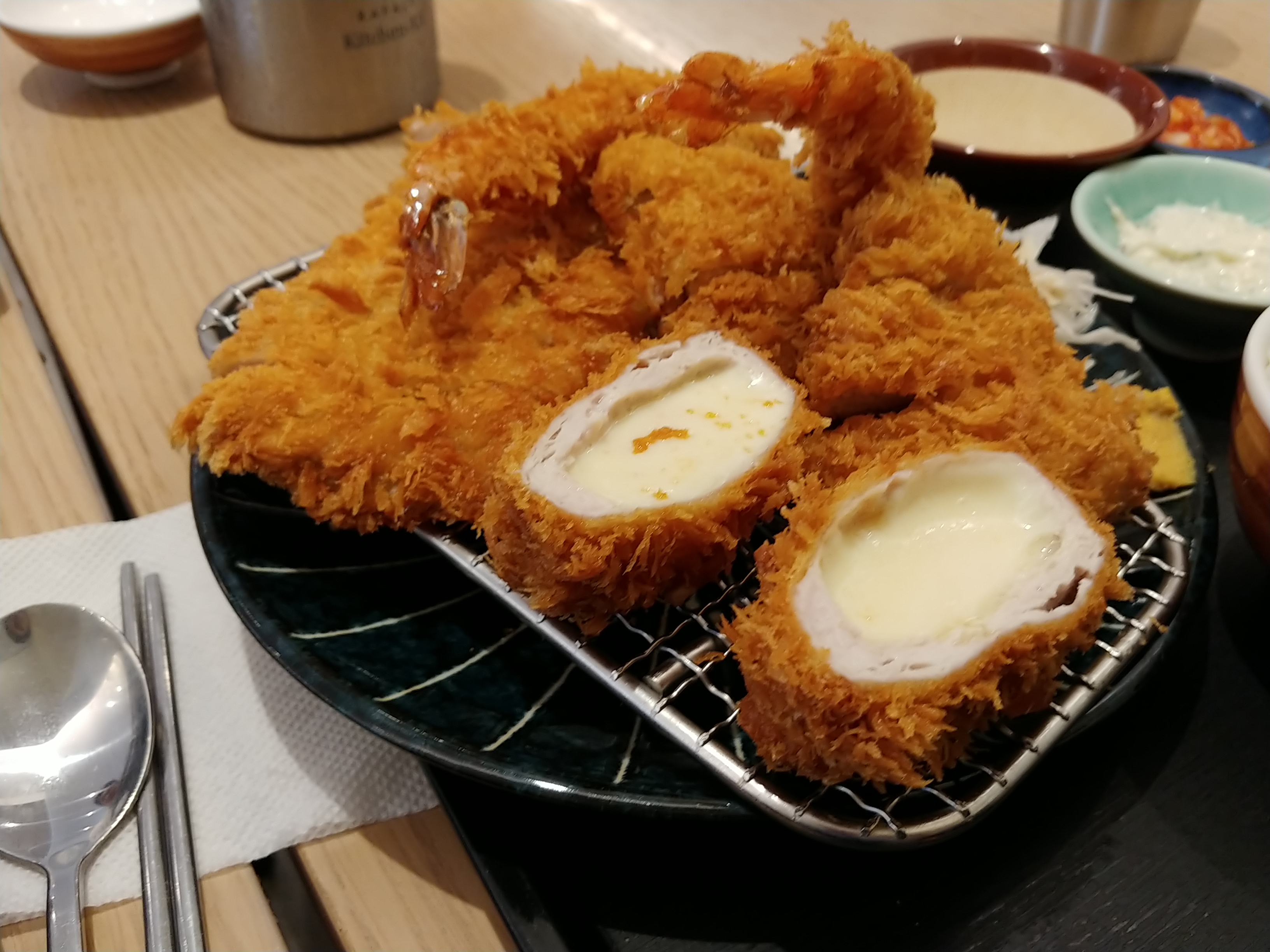 기본적인 구성은 같고, 카츠가 종류별로 여러가지가 있었는데 맛있는데 양이 많아서 다 못먹겠다며 나눠주셨어요 ㅋ