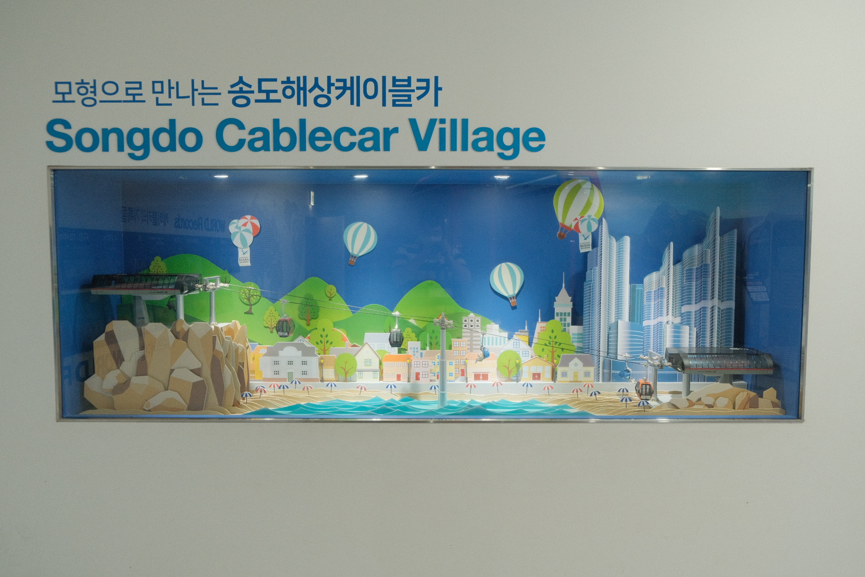 안쪽에는 모형으로된 송도해상 케이블카와 케이블카가 있어서 타 볼수 있었어요.