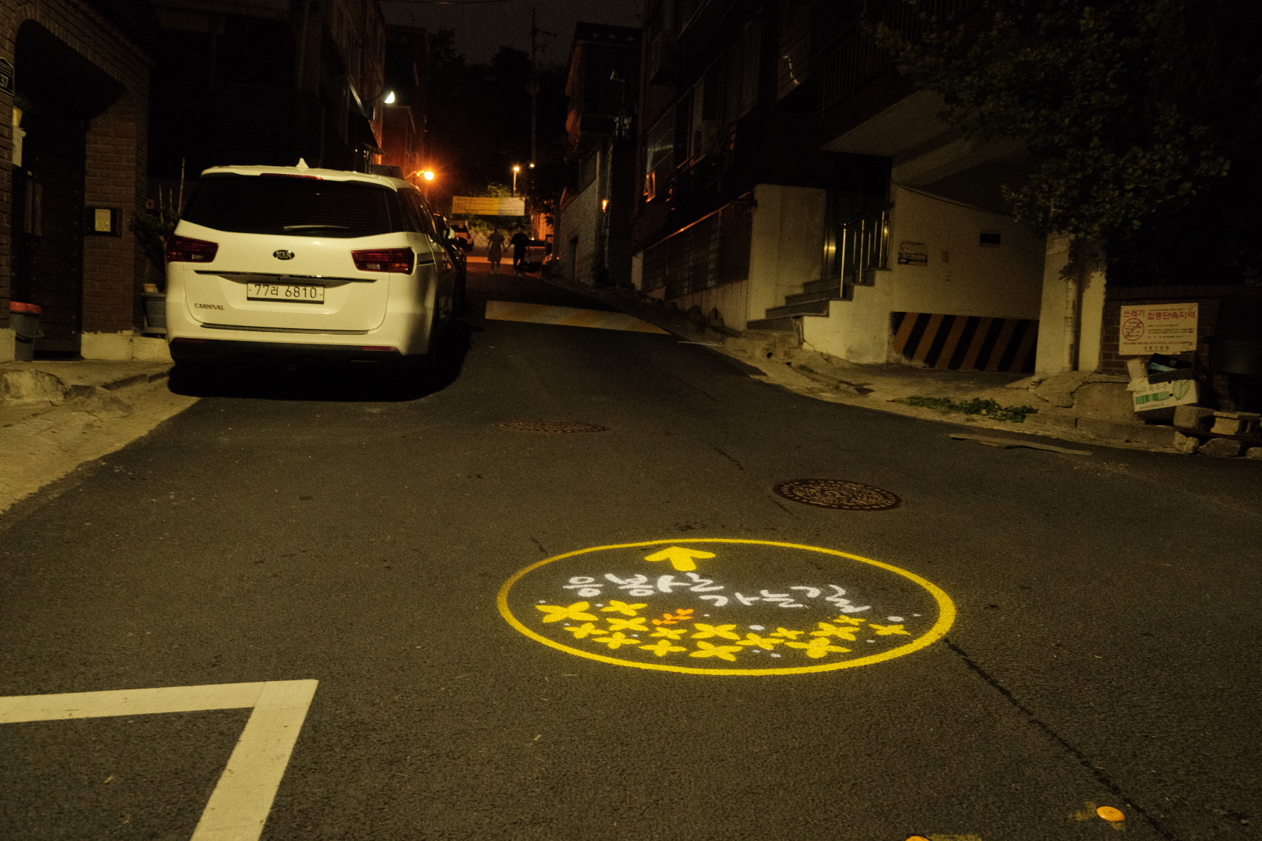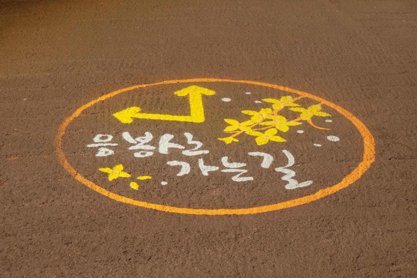 지하철에서 나와서 왼쪽편으로 따라 오면 금방 바닥에 응봉산 가는 길이라는 표시들을 보실 수 있을거예요.