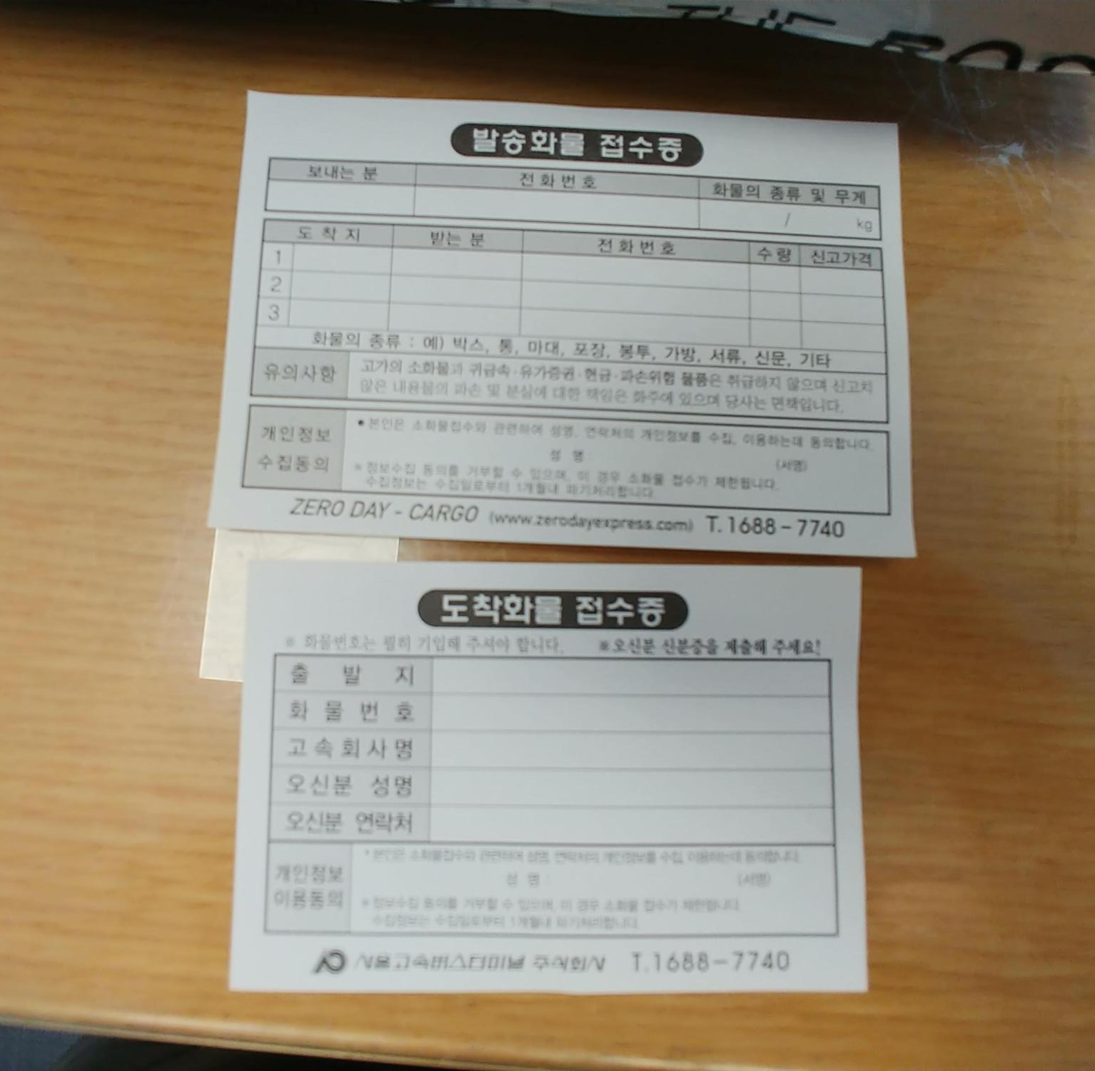 종이는 보니깐 도착화물 접수증과 발송화물 접수증 2가지가 있었어요.