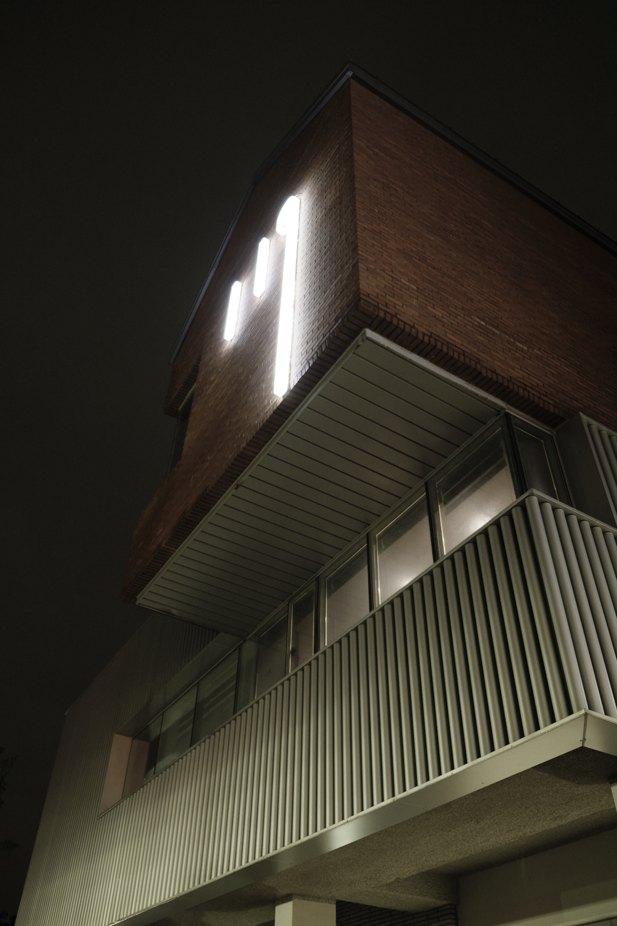 건물은 크게 1층 타일&시멘트, 2층 파이프 모양의 외장재, 3층은 빨간 벽돌의 모양으로 되어 있었어요.