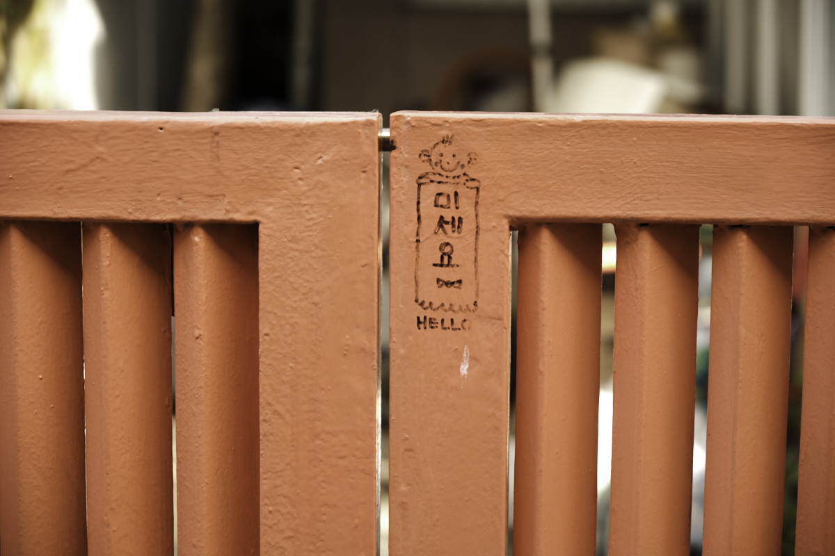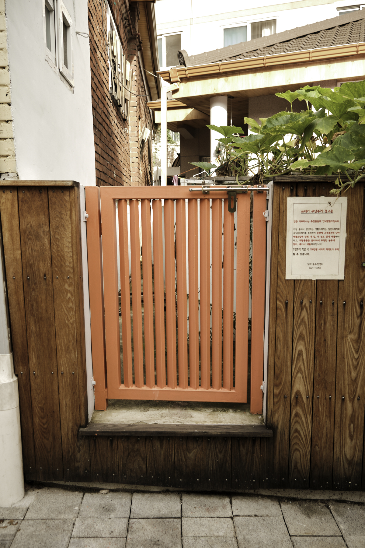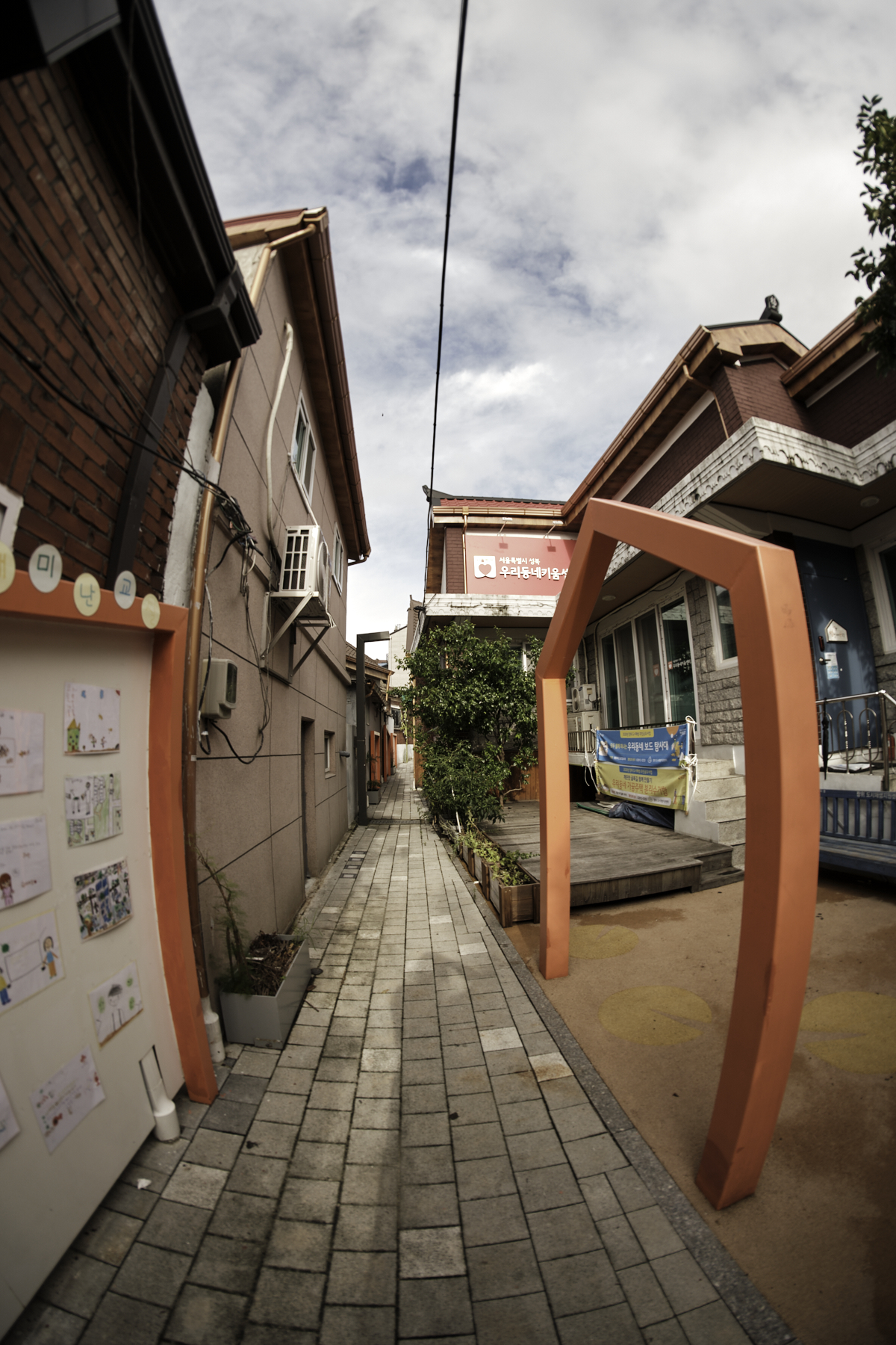 한쪽 좁은 골목길에는 삭막한 느낌을 제거하려고 주황색으로 프레임을 만들어 게시판처럼 꾸며두었습니다.