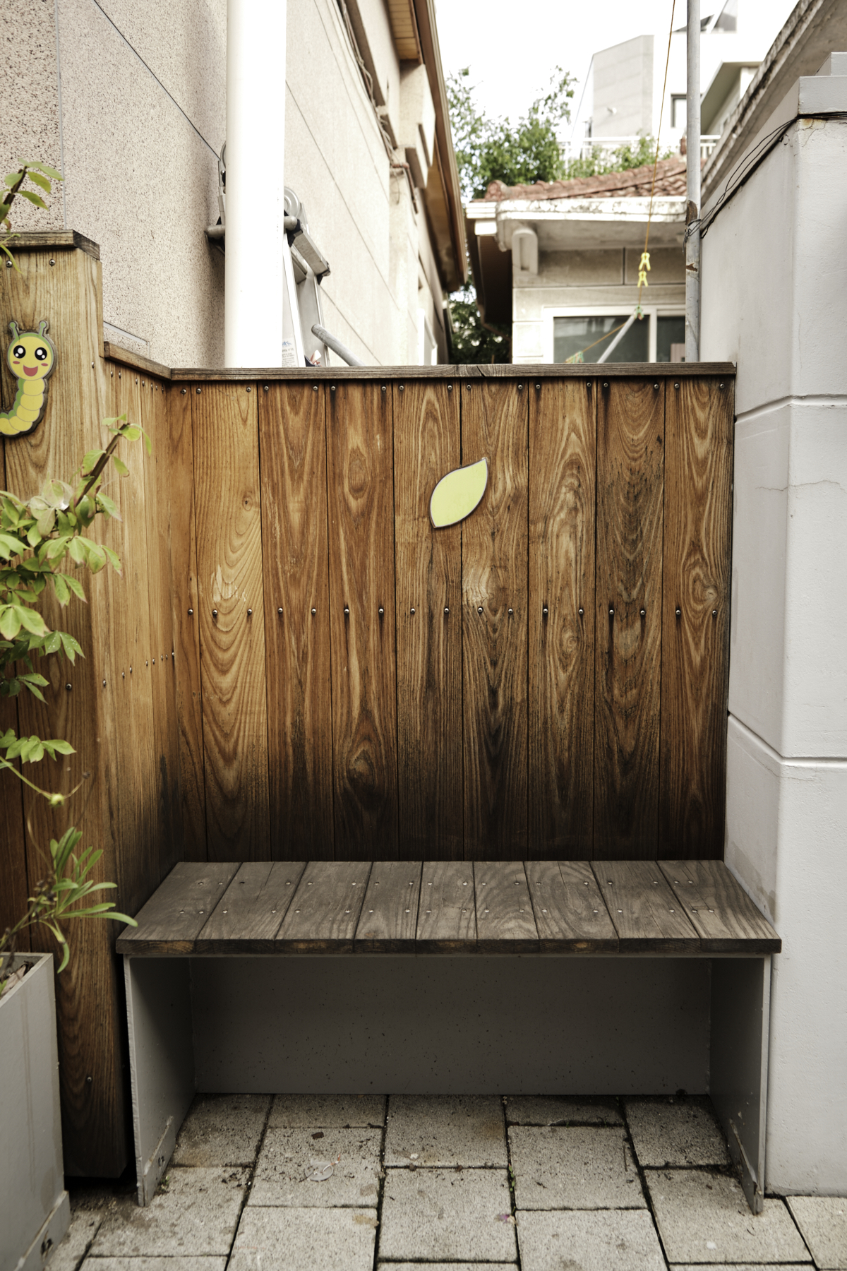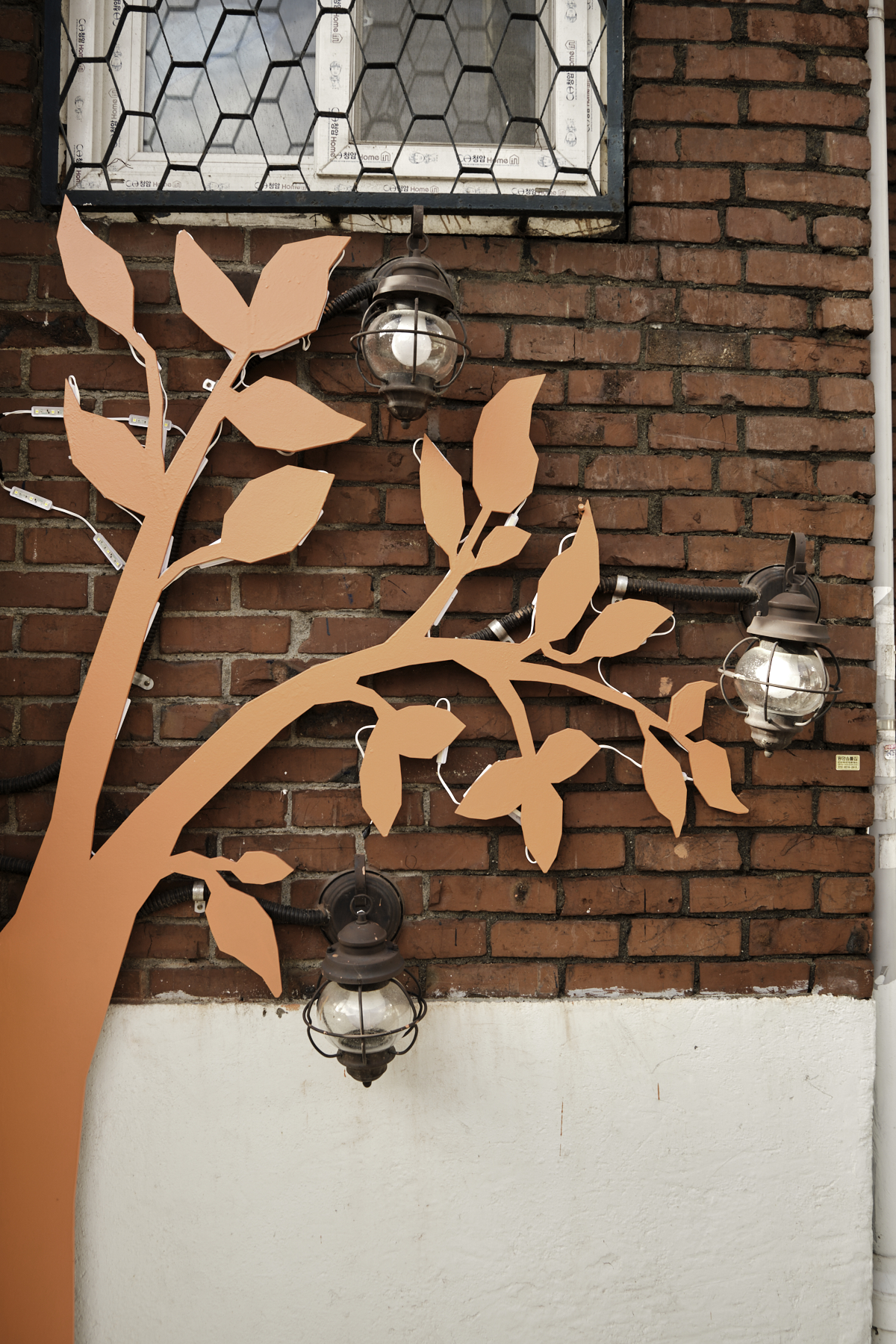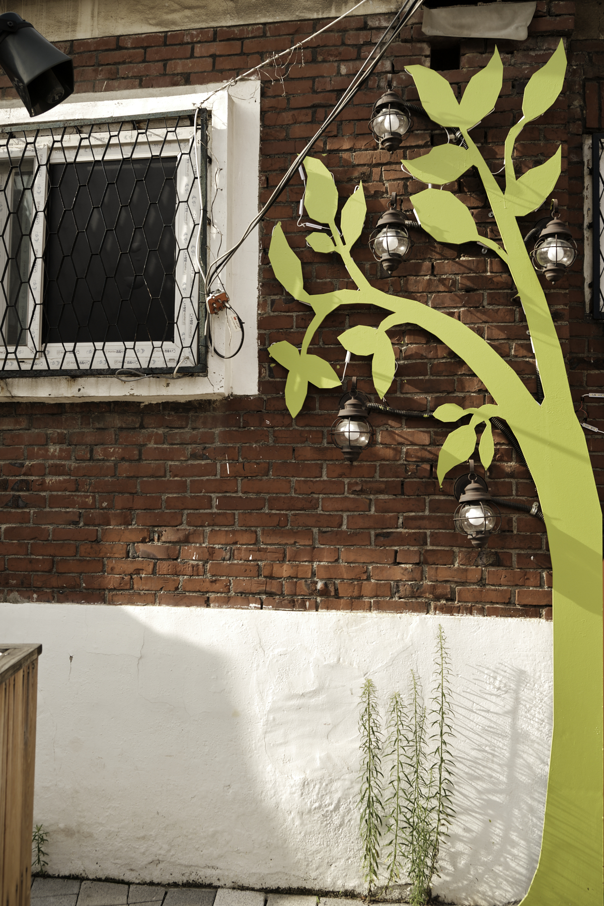 한쪽 좁은 골목길에는 삭막한 느낌을 제거하려고 주황색으로 프레임을 만들어 게시판처럼 꾸며두었습니다.