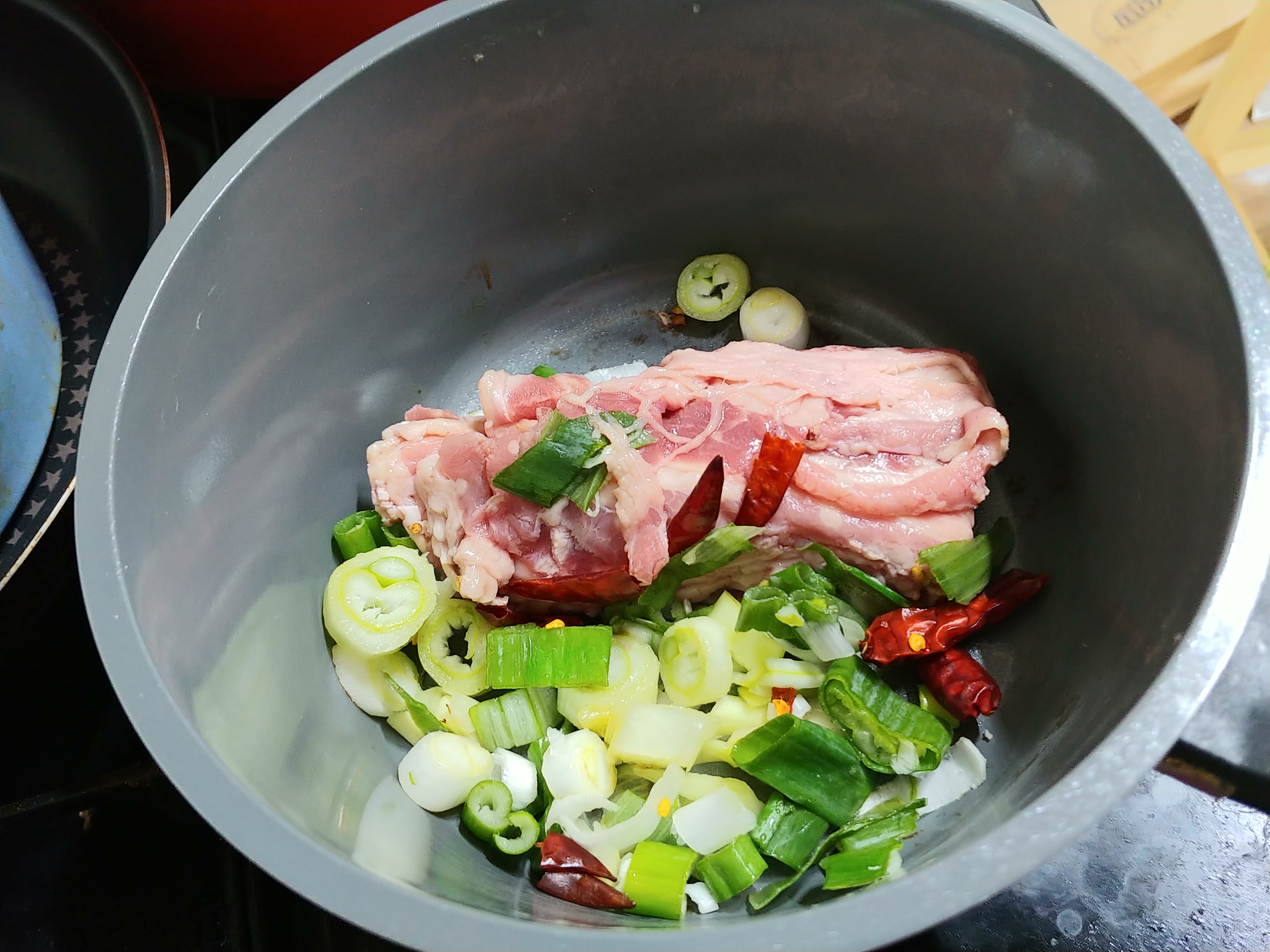 다음으로는 파와 고추를 먼저 익혀주고, 고기를 넣어서 익혀줬습니다.