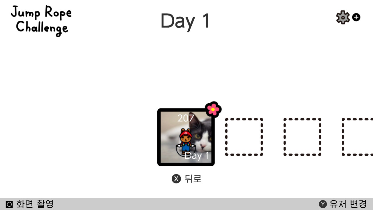 시작하면 아래 화면과 같이 나오고, 조이콘을 쥐고 줄럼기 하듯 뛰면 아바타가 같이 뛰어주네요 ㅎ