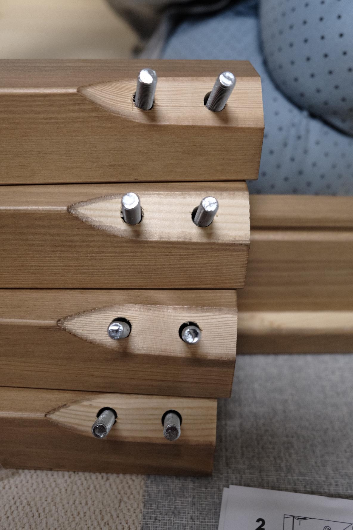 그러고 나서 미리 구멍나 있는 홈에 나무못(?) 같은 걸로 꼽아줬어요.