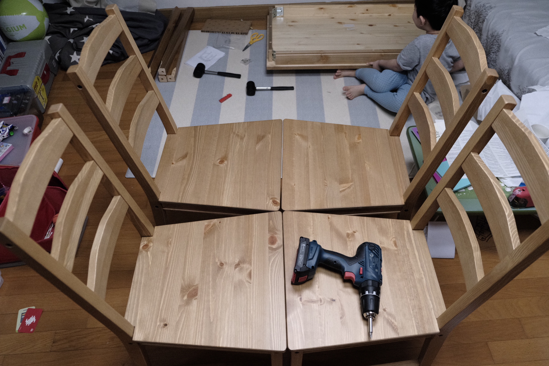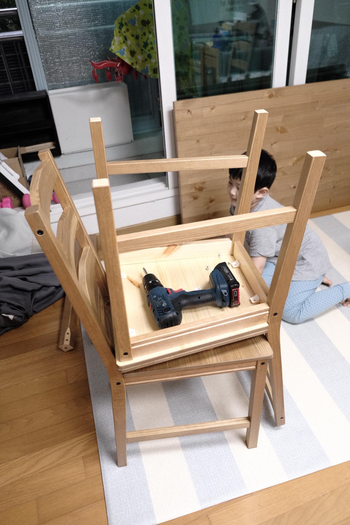아들이 나사를 제자리에 꽂아 놓으면 저는 드릴로 쑥쑥 집어넣어줬어요 ㅎ