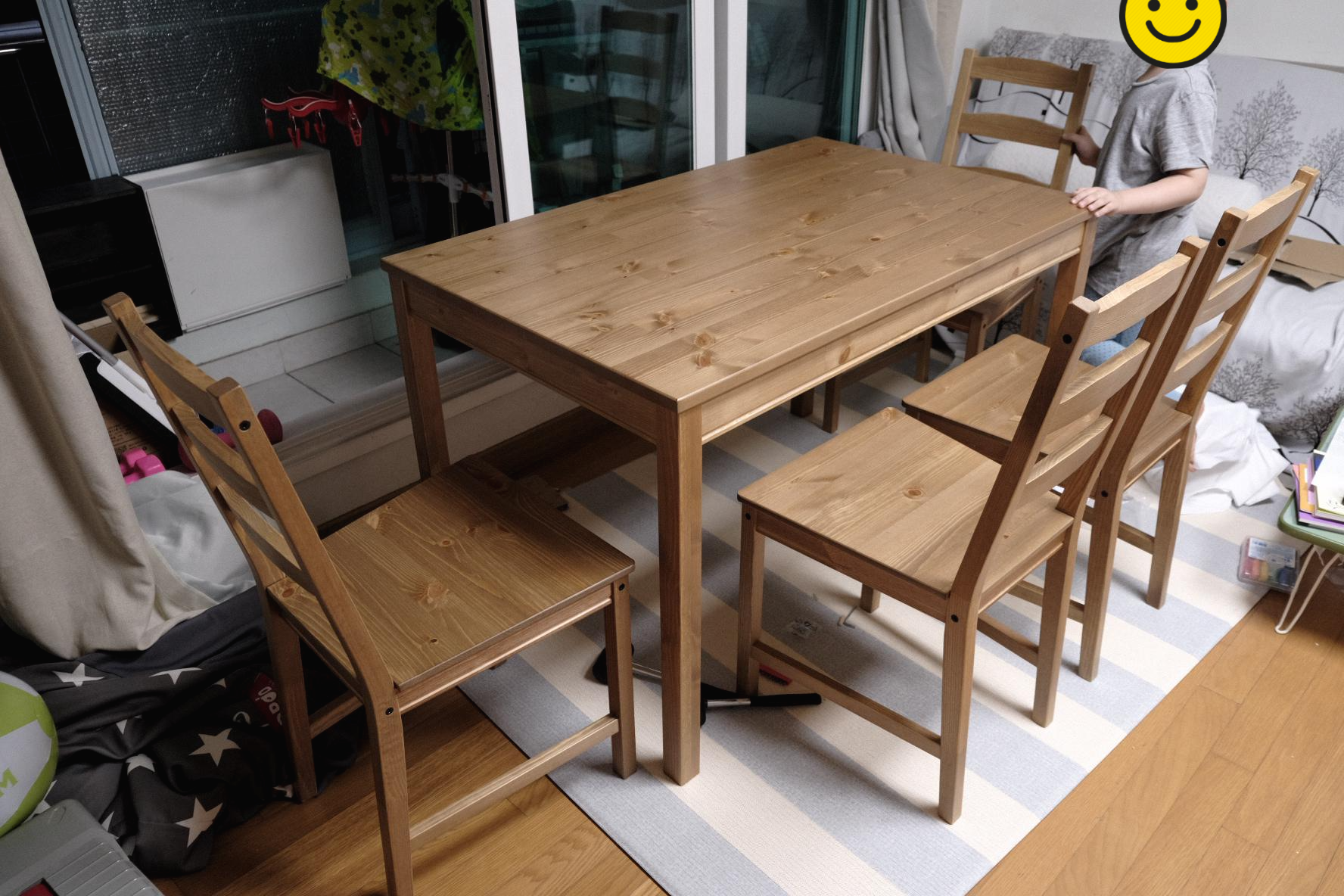 그리고 끝으로 식탁 다리 아래에 플라스틱을 꽂아주면 작업 끝!