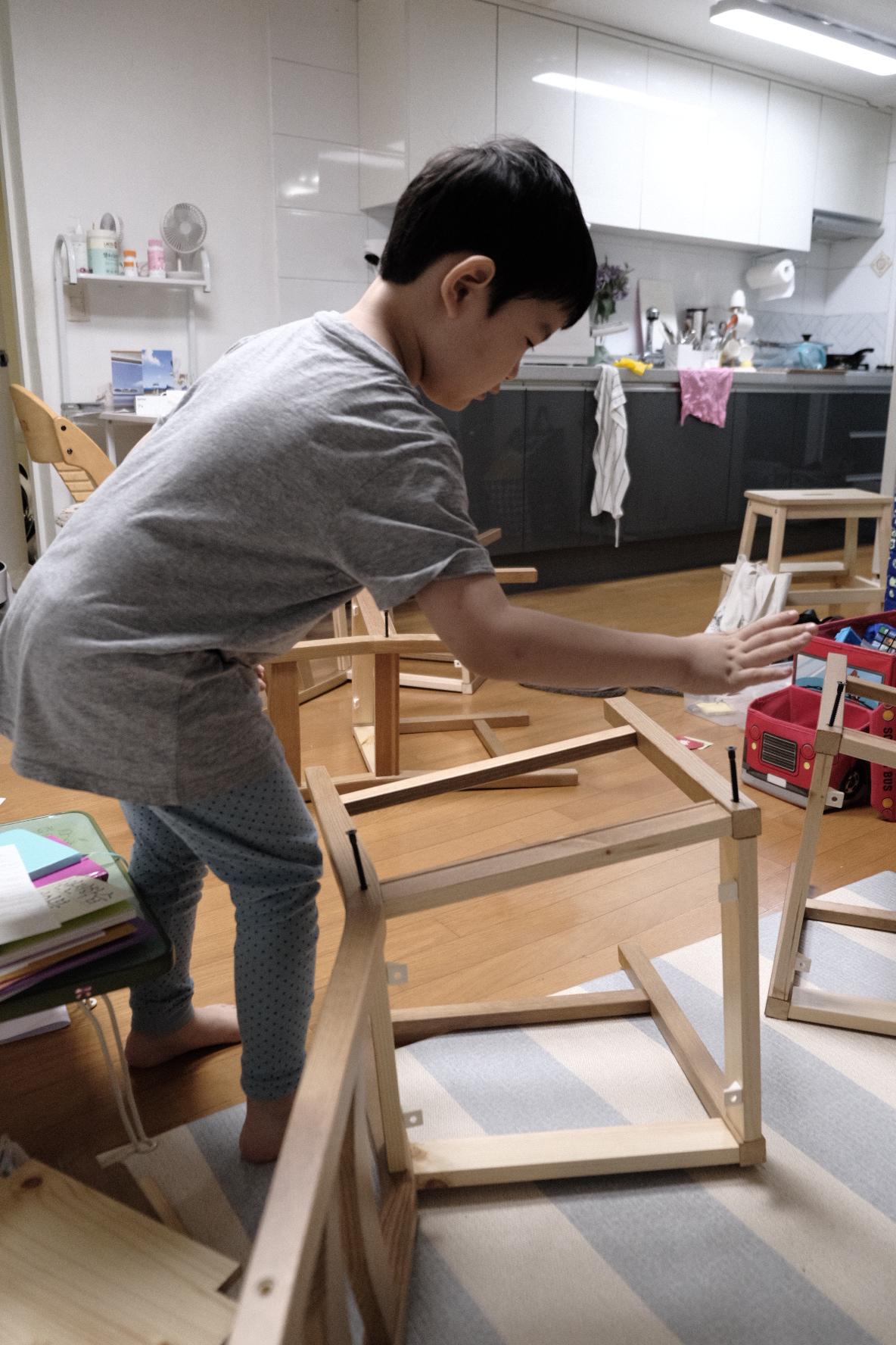 벌써 혼자 식탁 다리를 어떻게 만드는지 살펴보기 시작했어요 ㅋ