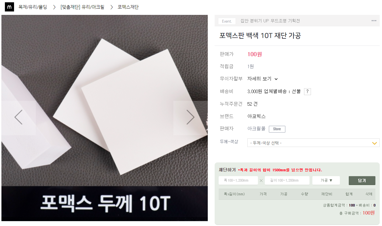 그래서 그냥 시트지를 붙일지 고민하다가 그냥 포맥스로 교체해주는 것을 선택했습니다.