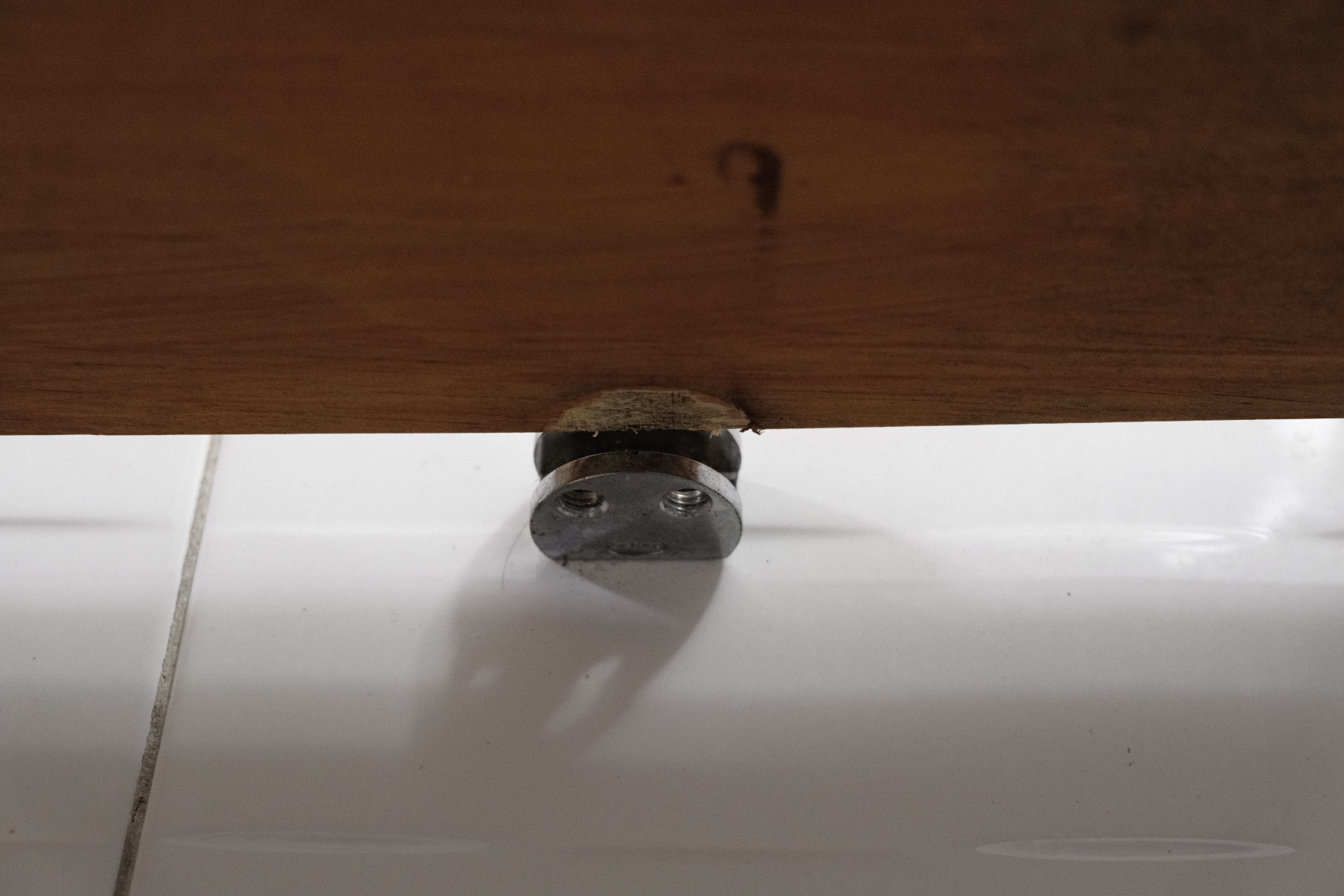 화장실 선반 교체는 선반 고정하는 곳 아래에 보면 나사가 있어요.
