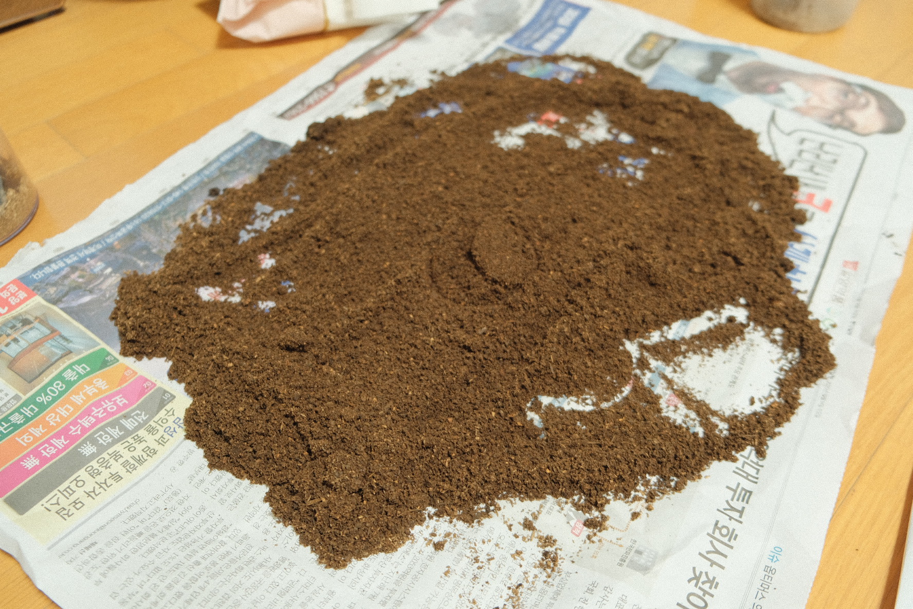 그리고 기존 장수풍뎅이를 넣어뒀던 흙은 신문지 위에 쏟아서 톱밥 파리들을 죽여줬어요