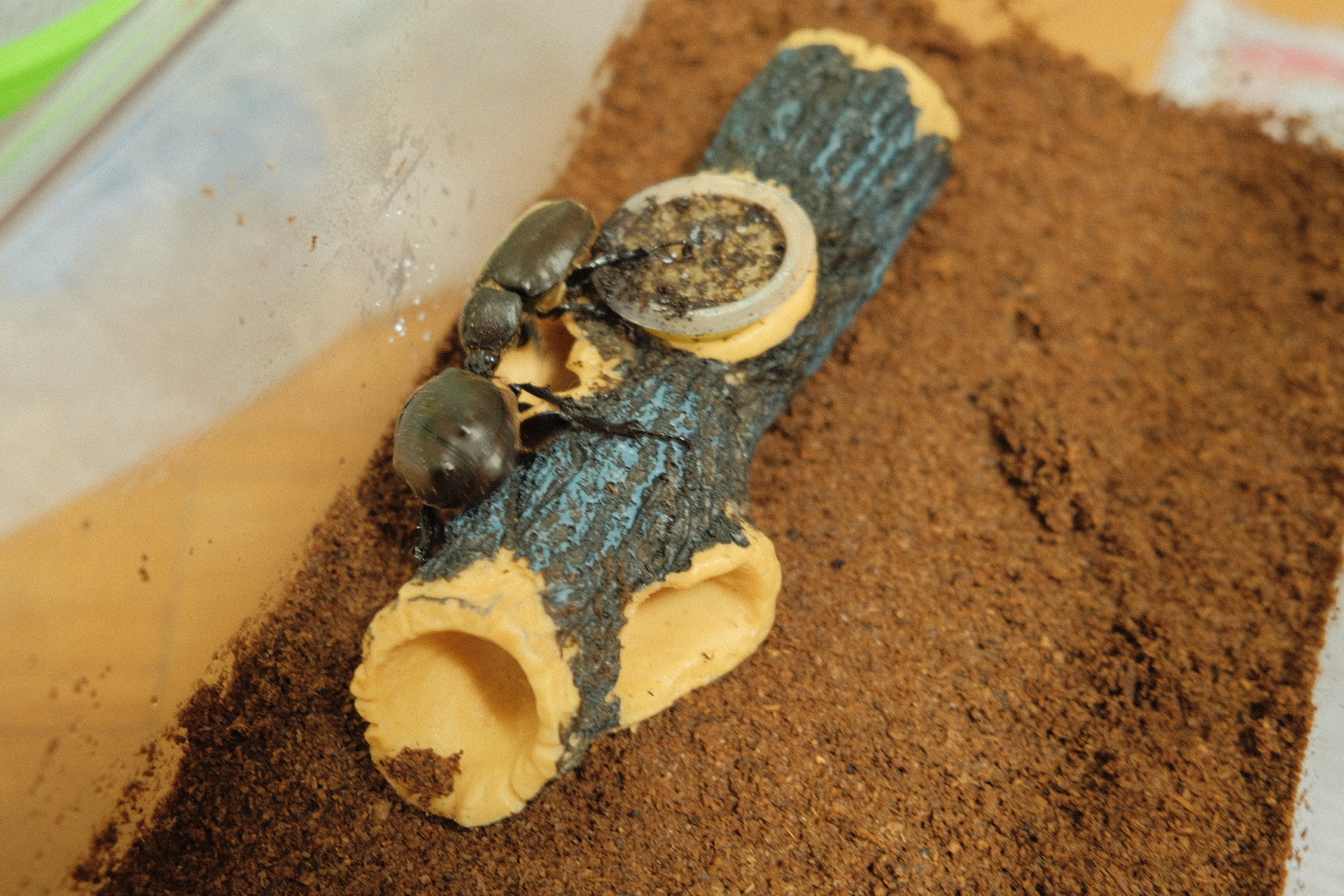 그런데 암컷 장수풍뎅이가 너무 작아서 그런지 짝짓기를 못하더라고요 ㅠㅠ