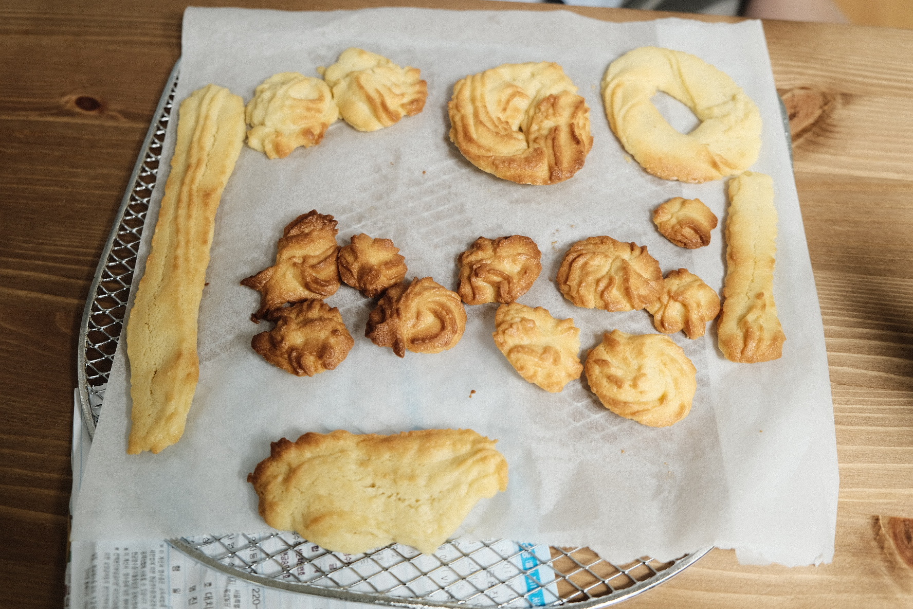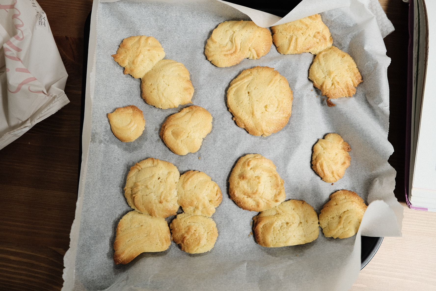 제품 믹스에 달걀, 그리고 버터를 넣고 잘 섞어주고, 짤 주머니에 반죽 넣어서 짜주면서 모양내고 오븐에 구워내면 끝!