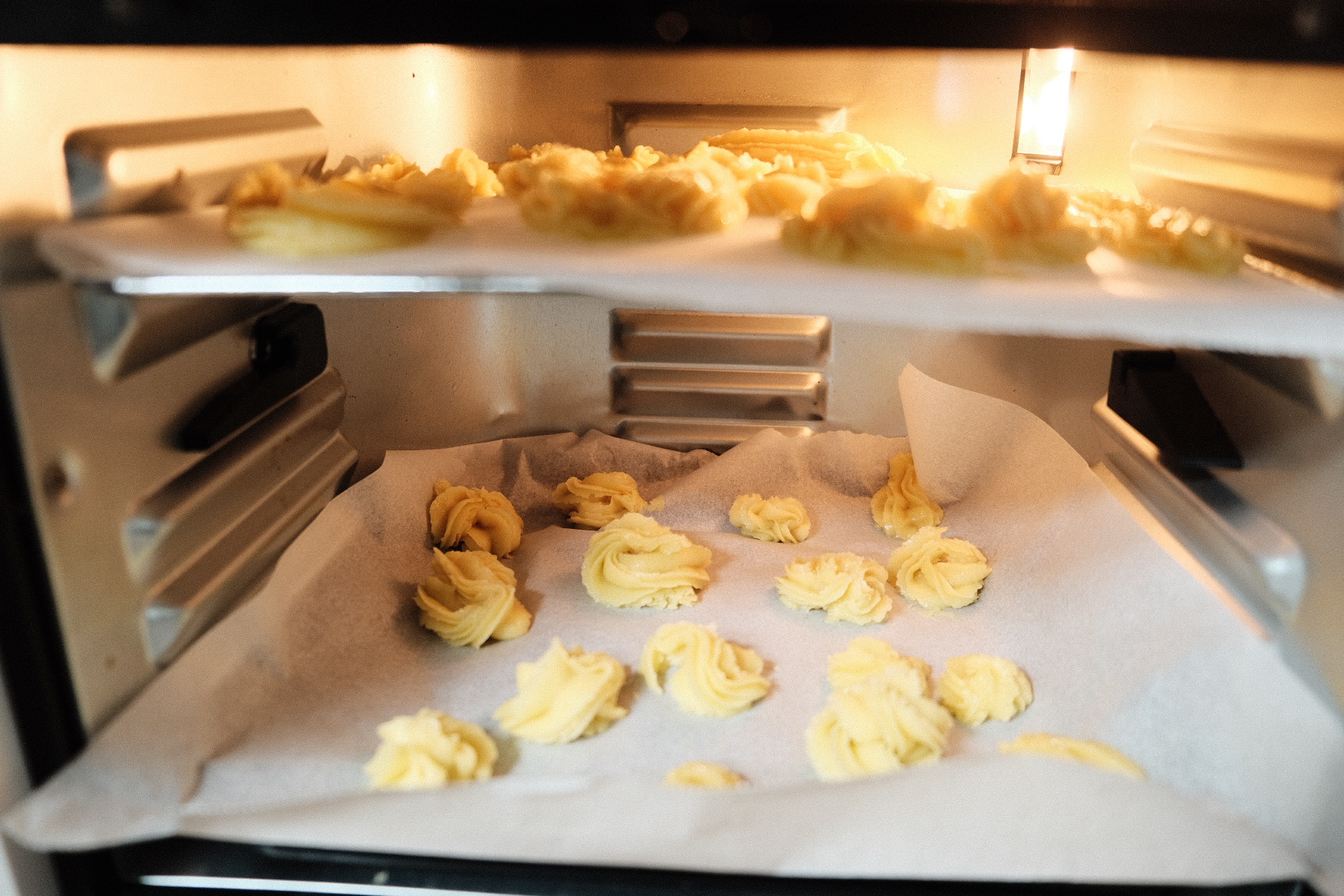 요렇기 2층으로 쌓아줬는데, 아랫층에 있는 건 살짝 덜 구워져서 다시 넣어주고 조금 더 구웠어요