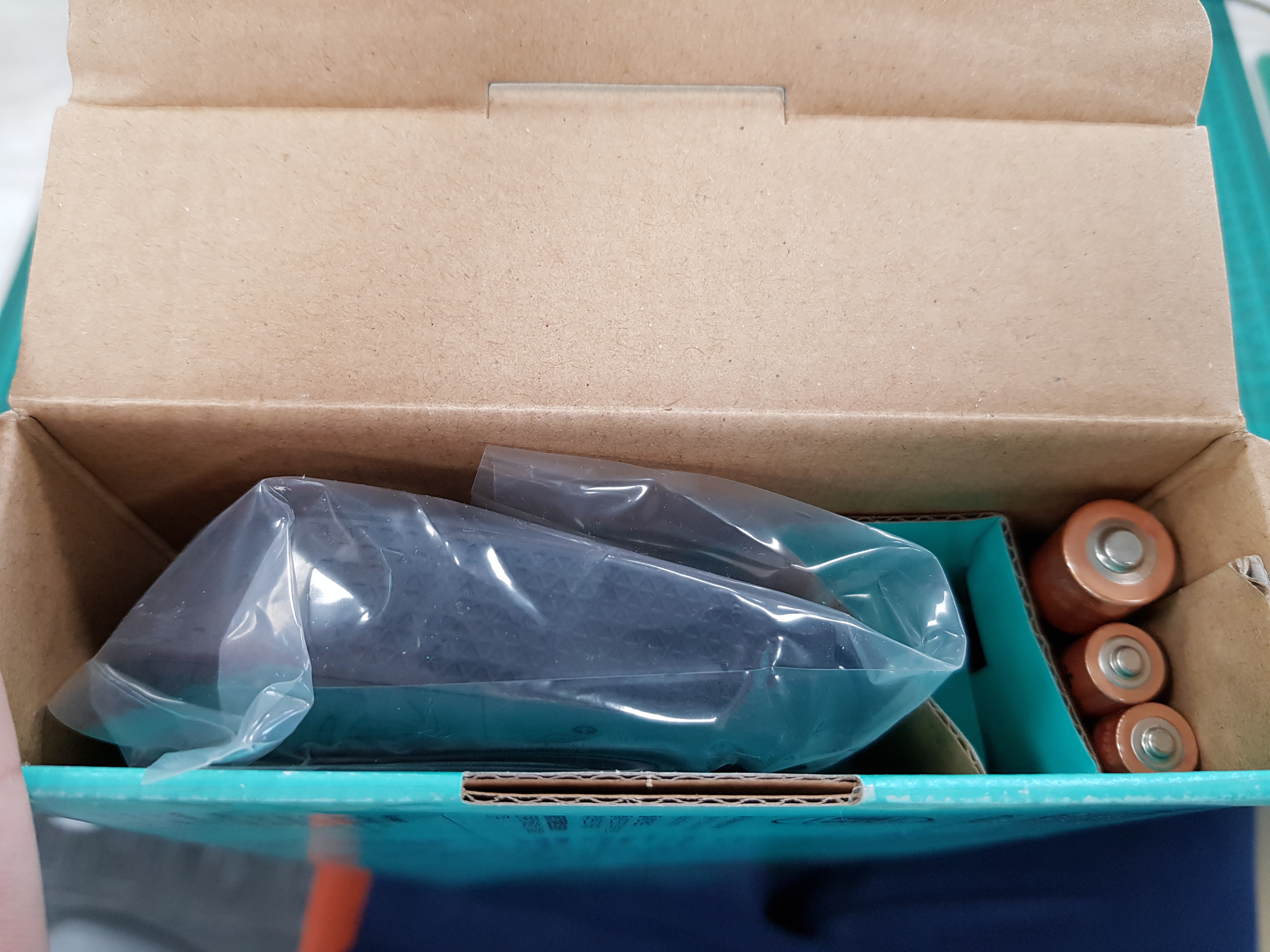 마우스는 AA 건전지 1개, 키보드는 AAA 2개 들어갔습니다.