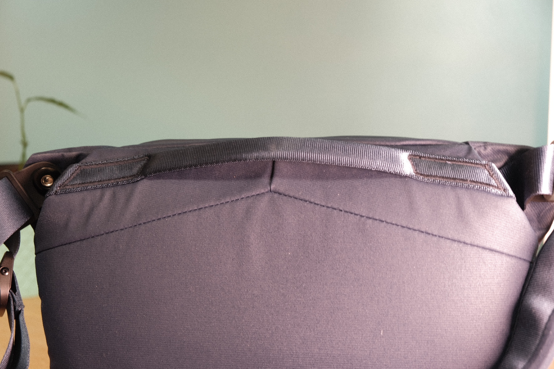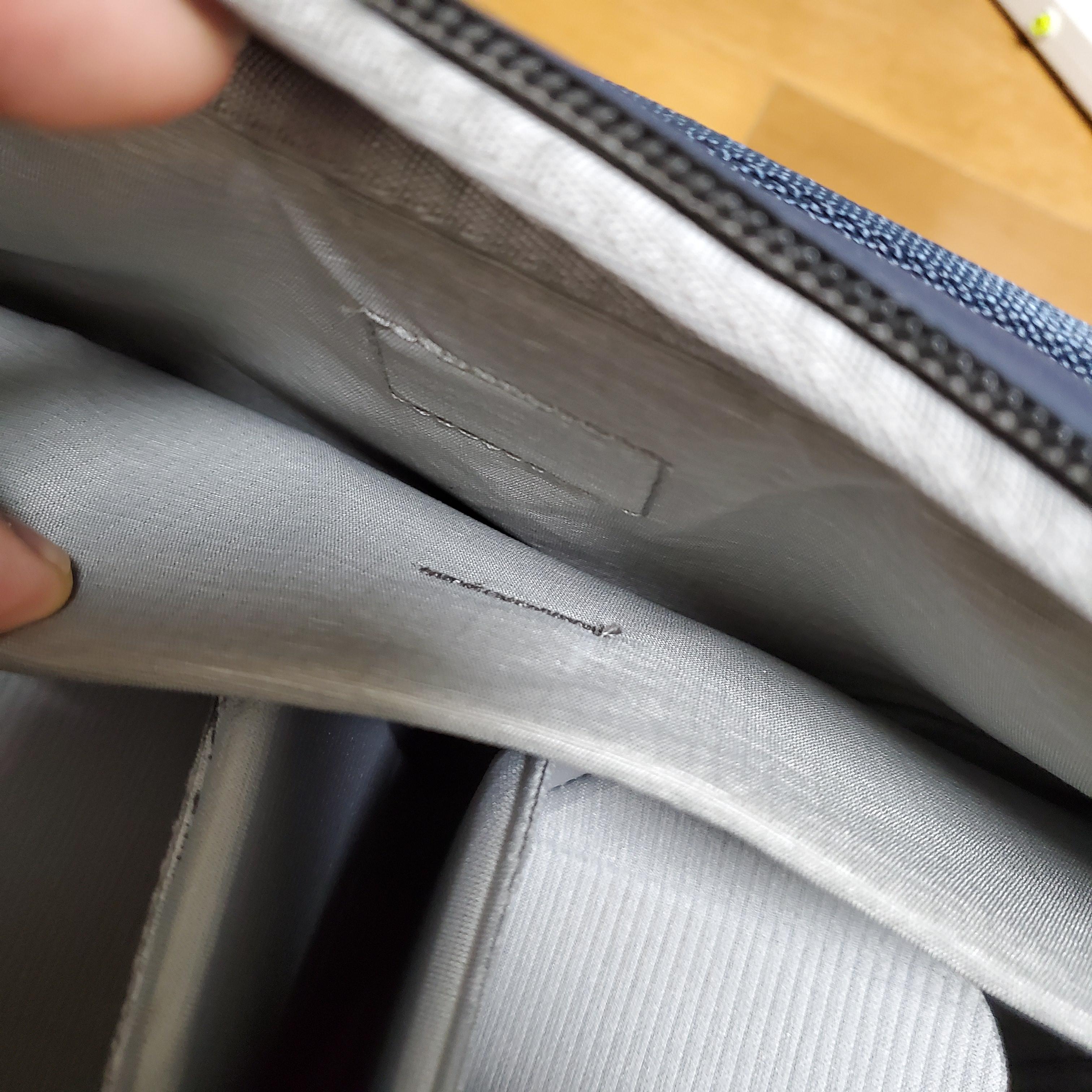 그리고 지나칠 수 있는 공간이 있었는데요 가방 뒷면에 보면 위 사진처럼 납작한 것을 넣을 수 있는 공간이 있어요.