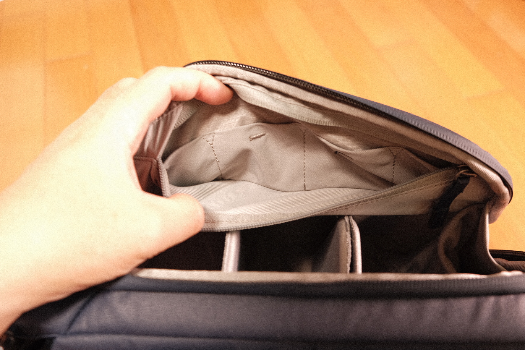그리고 상단에는 지퍼가 있는데 여기를 열어 보면 또 다른 수납공간이 나옵니다.