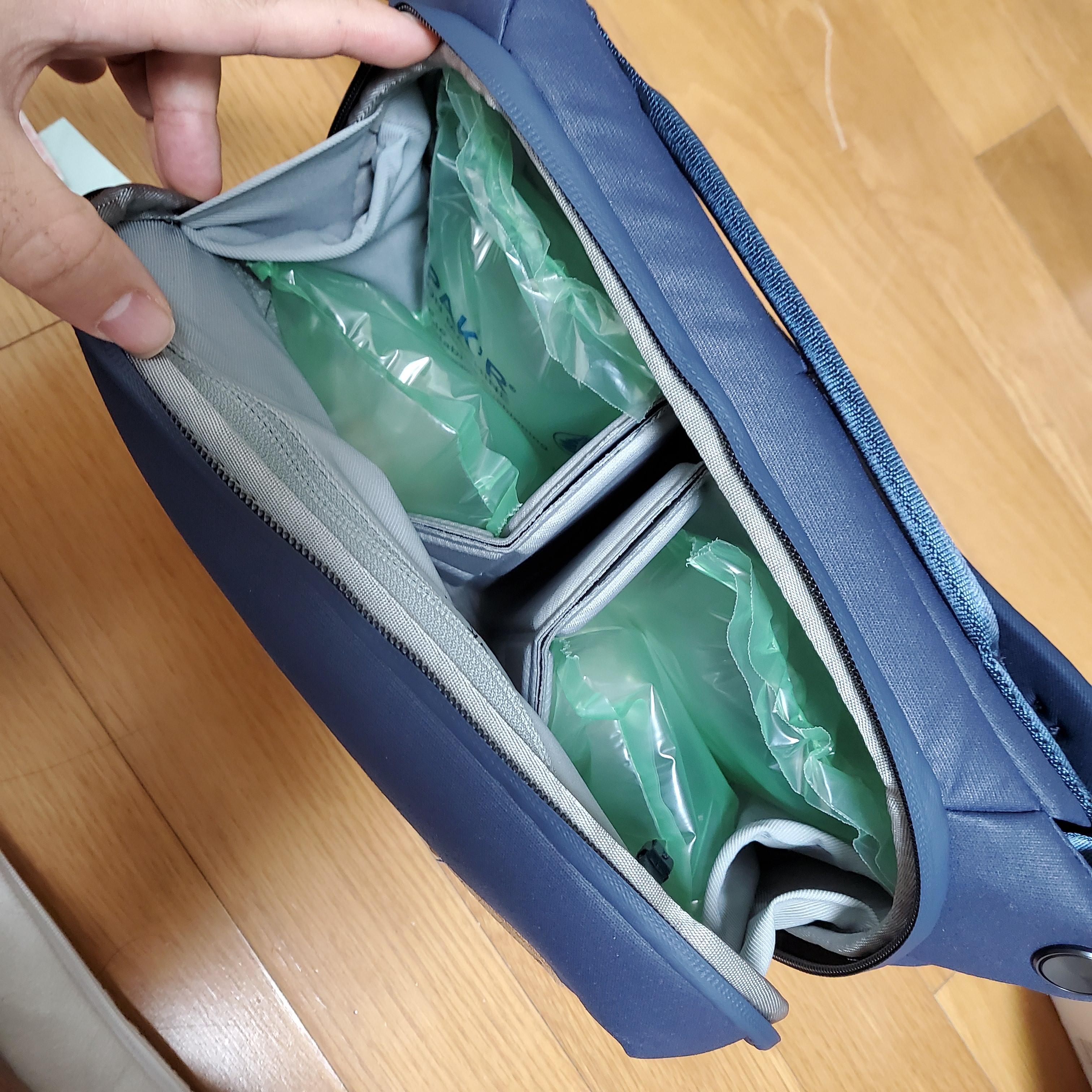 가방 안에도 가방 모양을 잡아주려고 에어쉘을 넣어뒀어요.