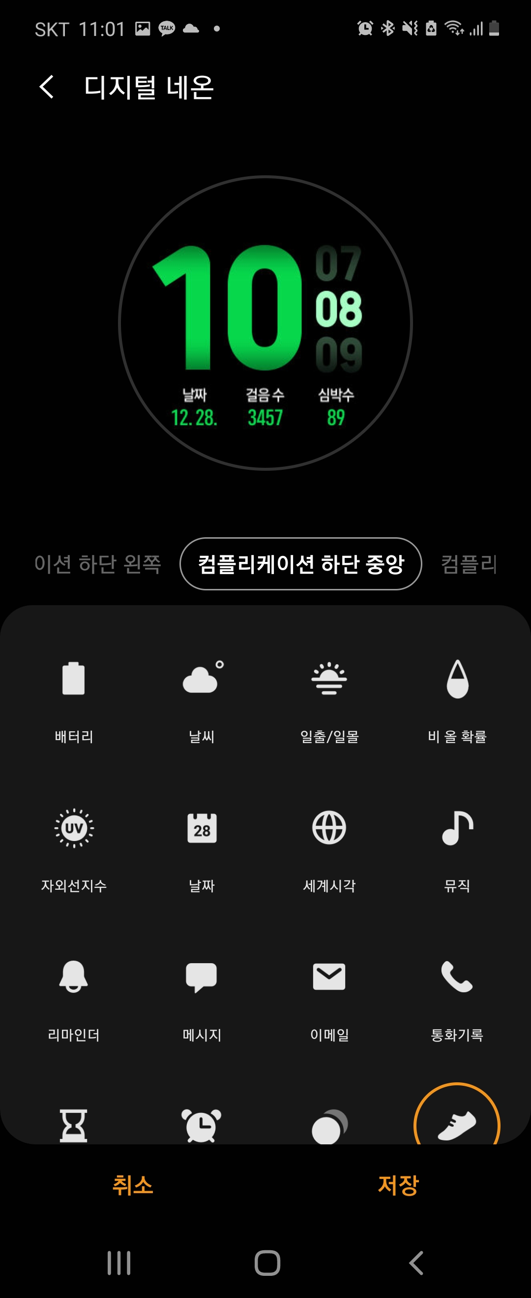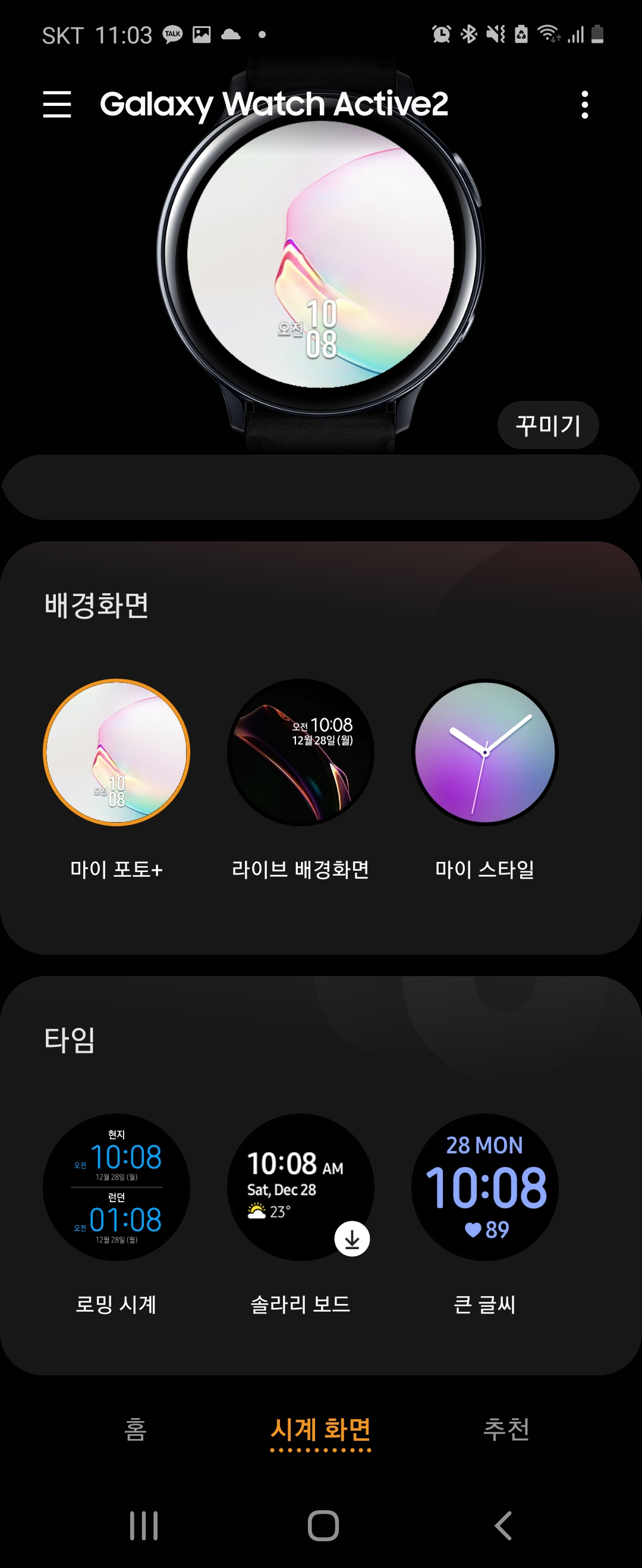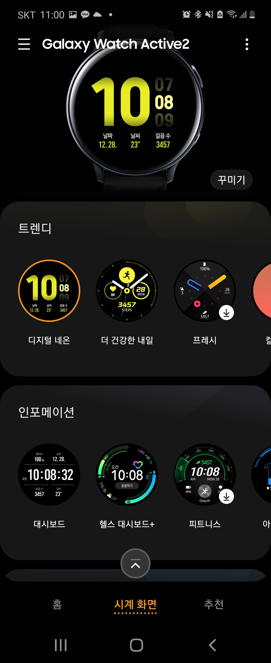 시계의 컬러라든가, 시계에 어떤 정보를 보여줄지 설정할 수 있었어요.