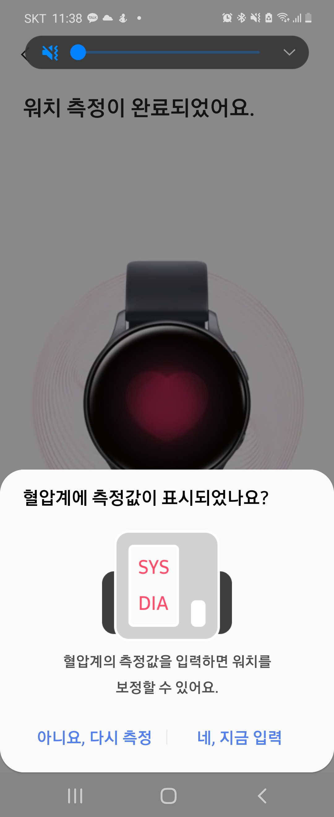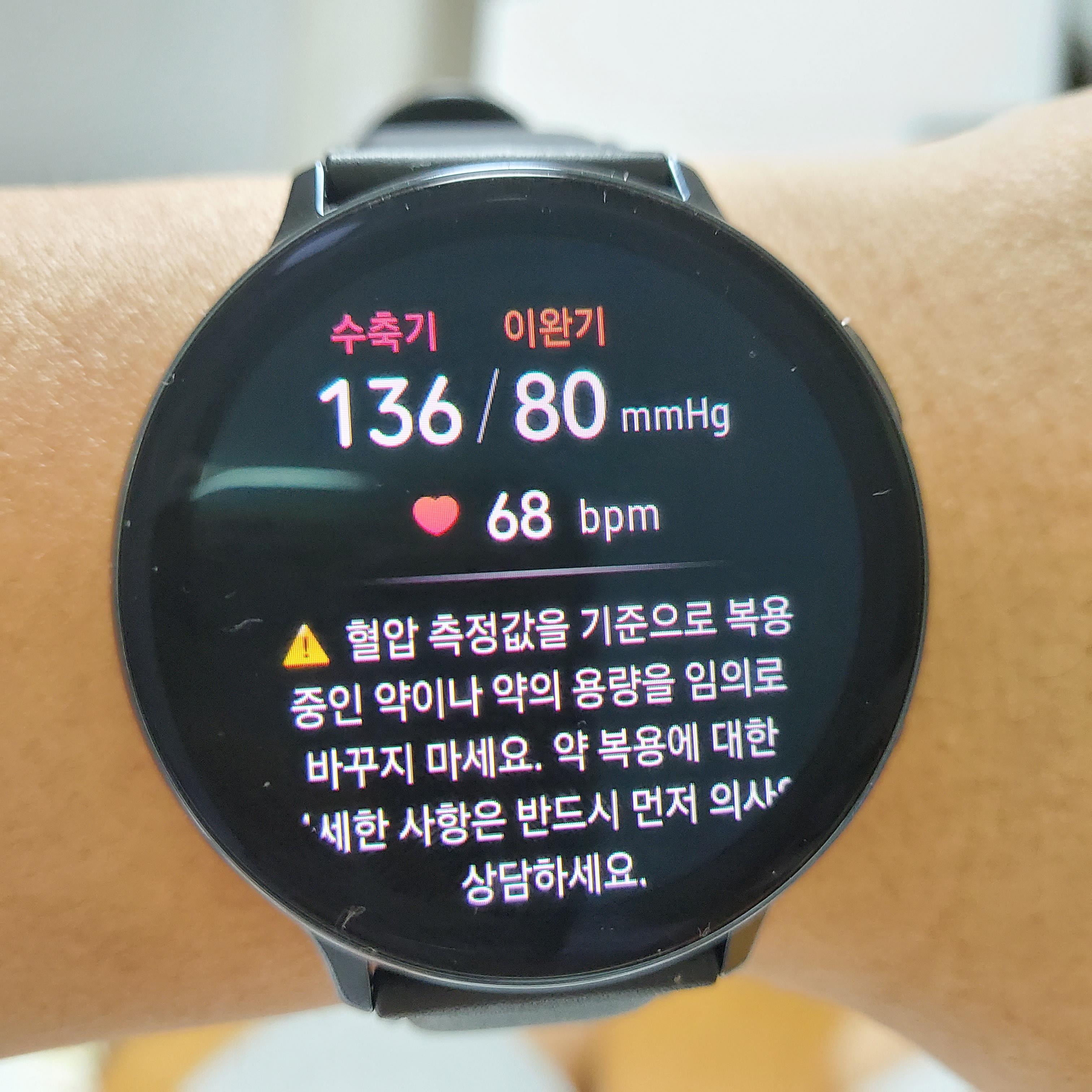 집에 있는 혈압계로 측정한 값을 3번 입력하면 동시에 측정하고 있는 시계의 값을 보정해서 기준을 정하는 것 같아요.