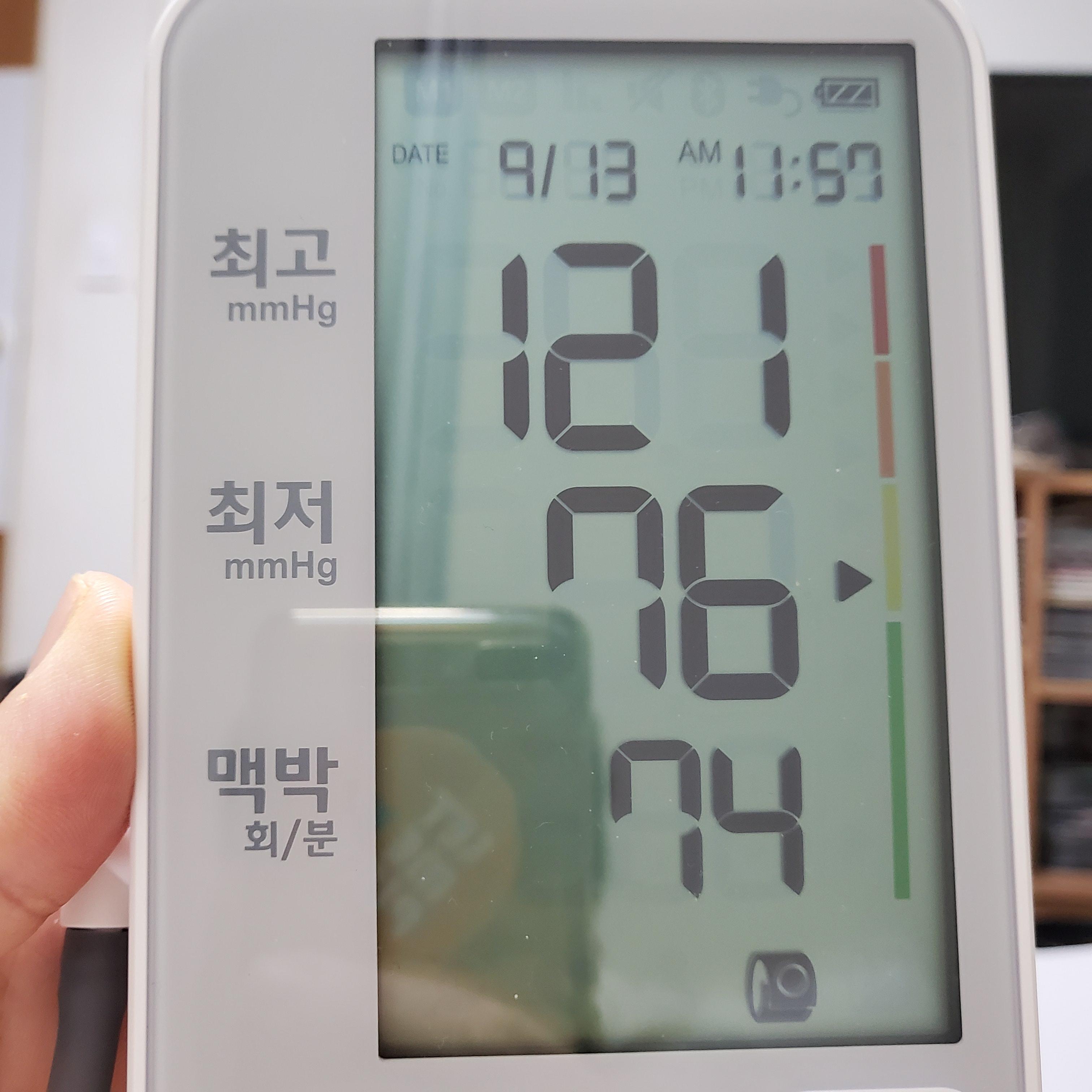 혈압계 측정값 넣어주고 나서 시계로 측정해봤습니다.
