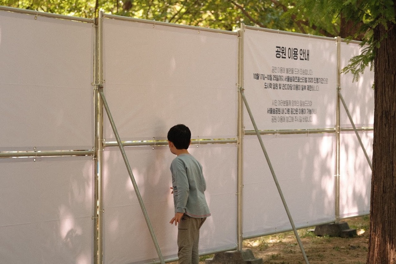 몇년 전엔 여기서 시에선가 구에서 연날리기 행사도 했는데 왜 안되냐고 하니,
