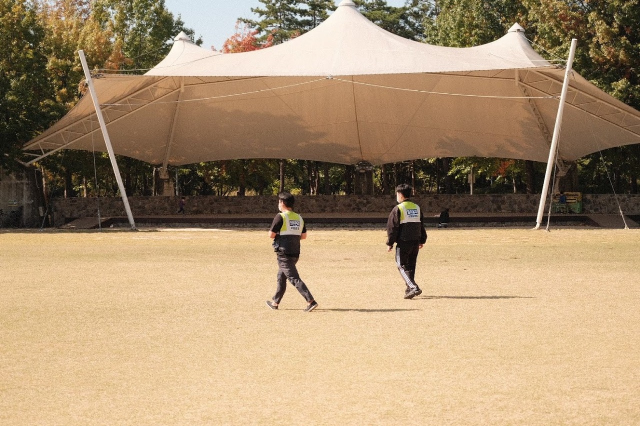 그분들도 보니 잔디밭에 자전거 타고 들어오시는 분들이 워낙 많아서 그거 잡으러(?) 다니느라 바빠보였거든요