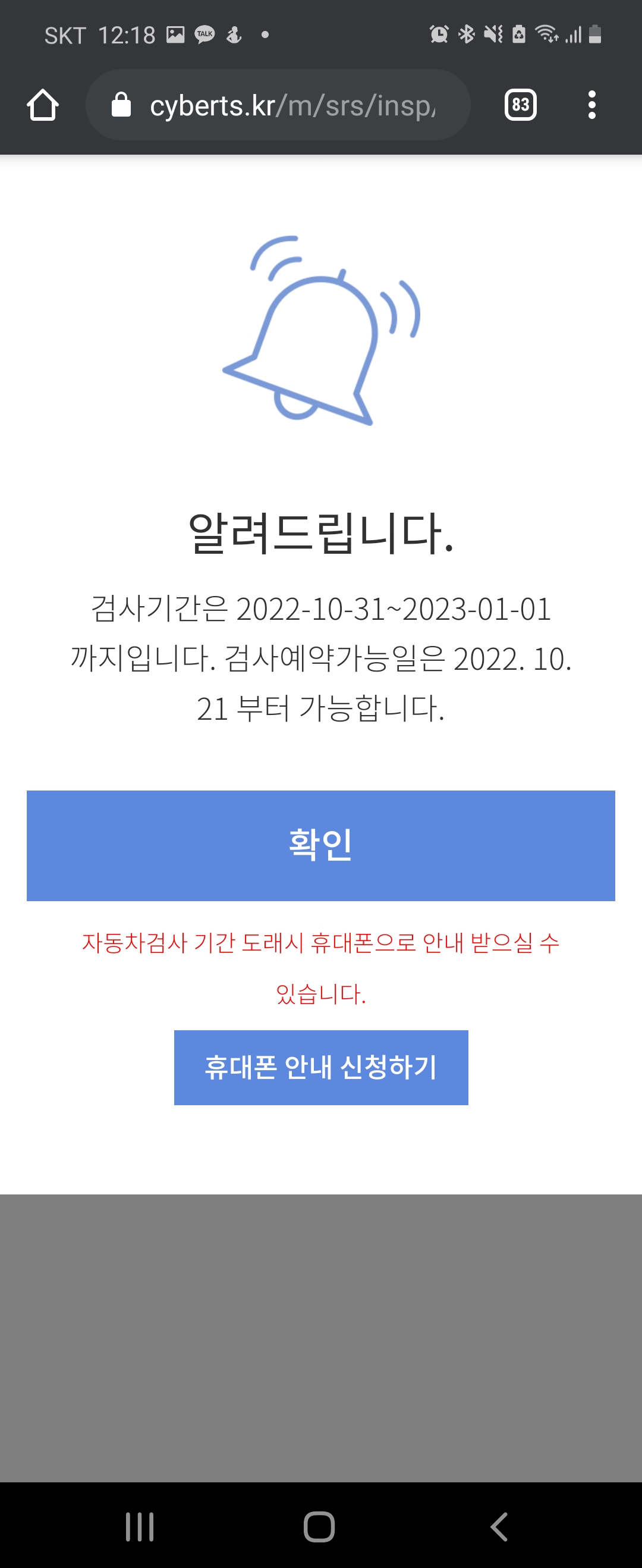 검사를 기간내 하지 않으면 벌금이 무려 30만원 이하의 과태료라고 하네요
