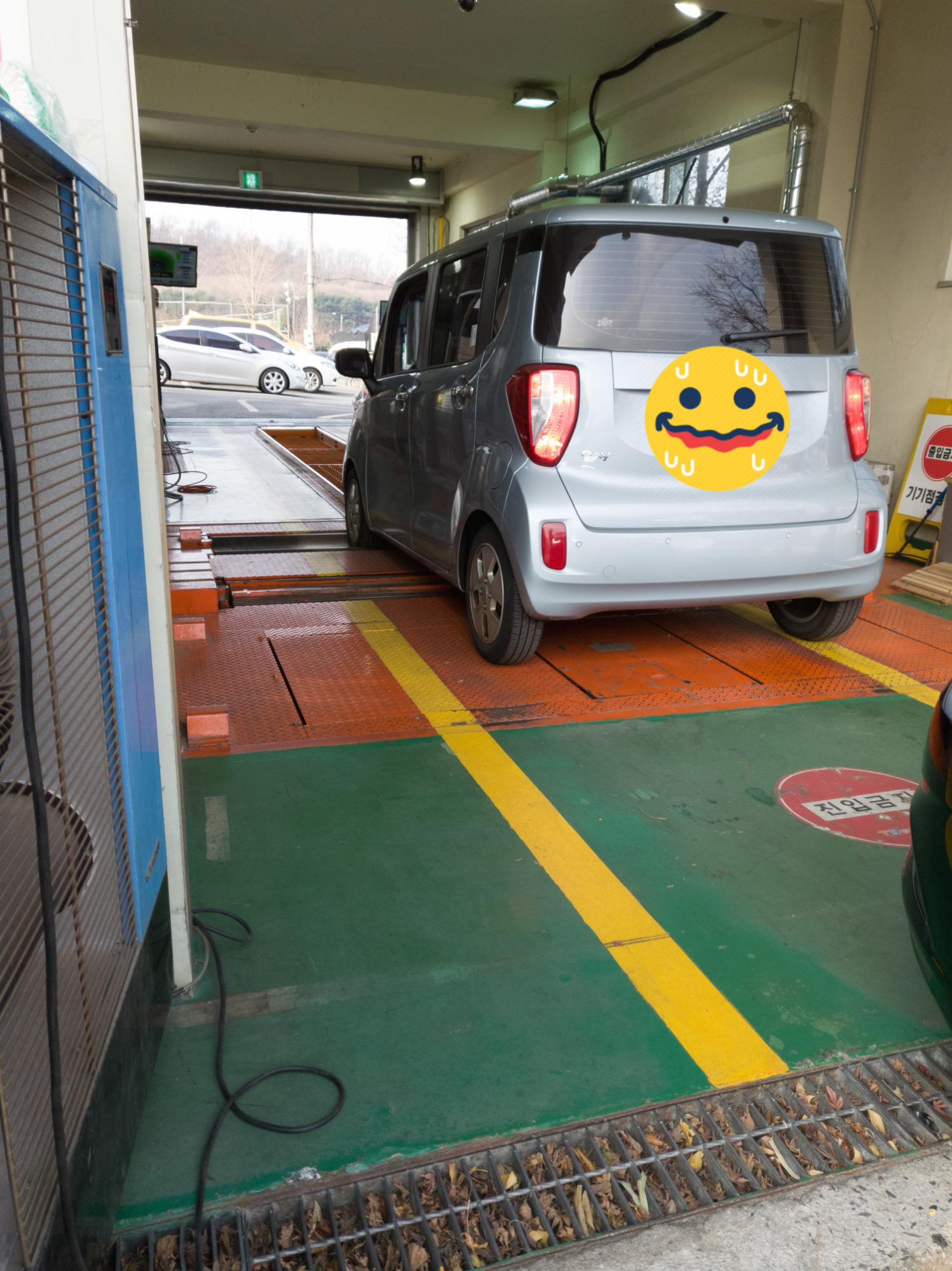 저희가 내리고 나서는 자동차 앞, 뒤축 무게등을 확인하고, 배기가스를 측정하셨어요.