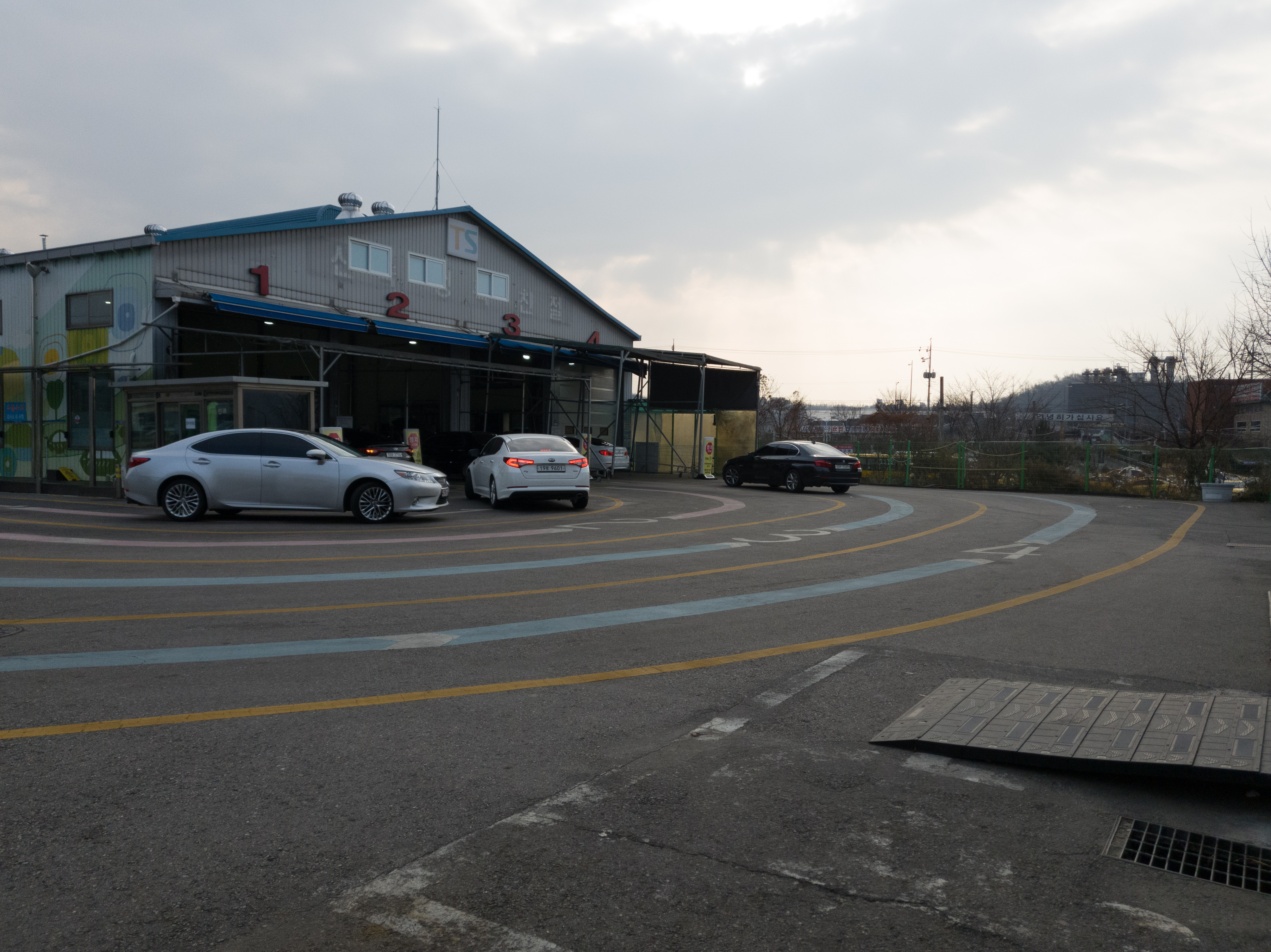 입구에 들어가니, 1~5번 차선이 그려져 있고 안내해 주시는 분이 5번 라인을 따라 가라고 하셨어요