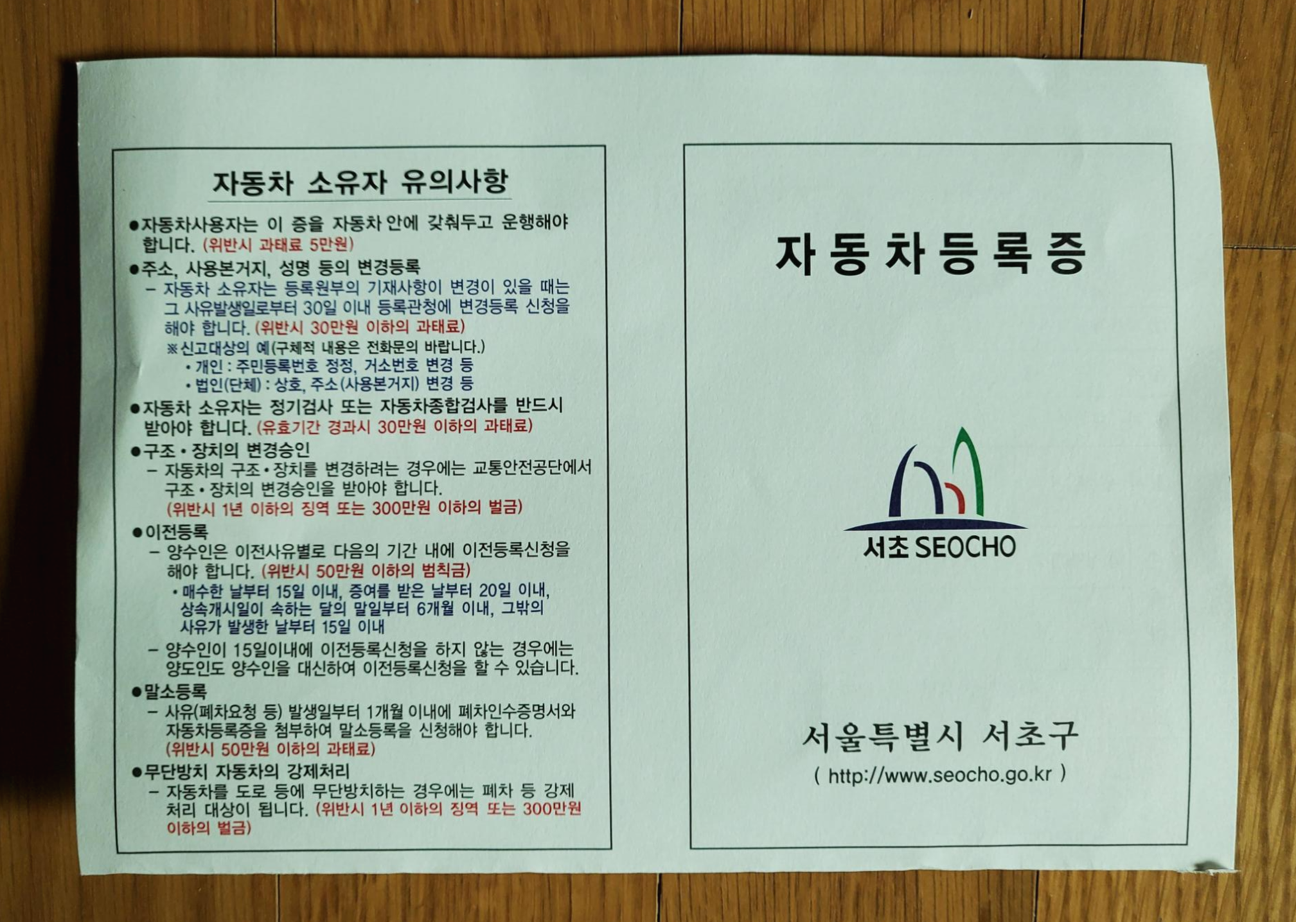 그리고 자동차 등록증에는 스티커와 도장을 찍어주셨어요.