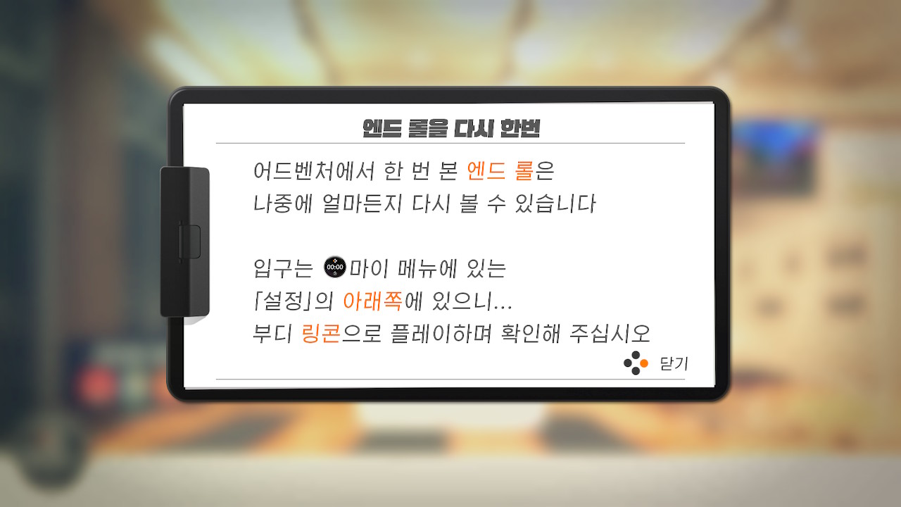 어드벤처를 종료하고 다시 시작해봤습니다.