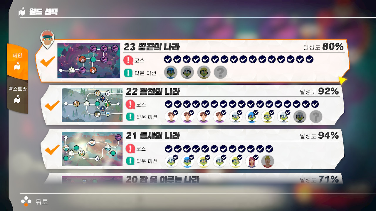 그래서 100% 안된 월드들이 아직 좀 남아 있어요 ㅠ