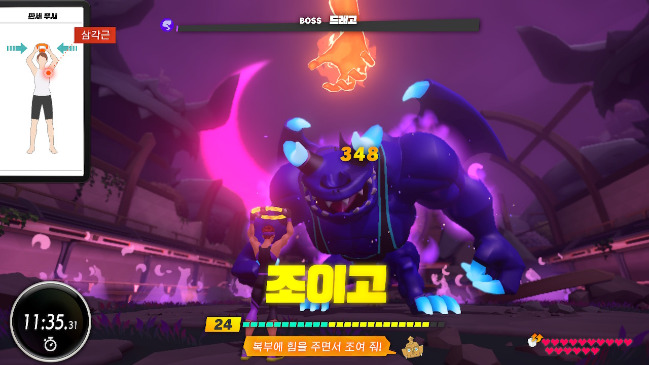 에너지가 0이 되니 그때서야 복근, 팔, 다리의 각종 버티기를 하고 나니 드디어 드래고가 쓰러지네요!!!