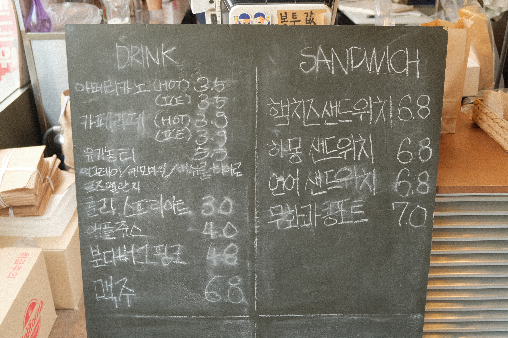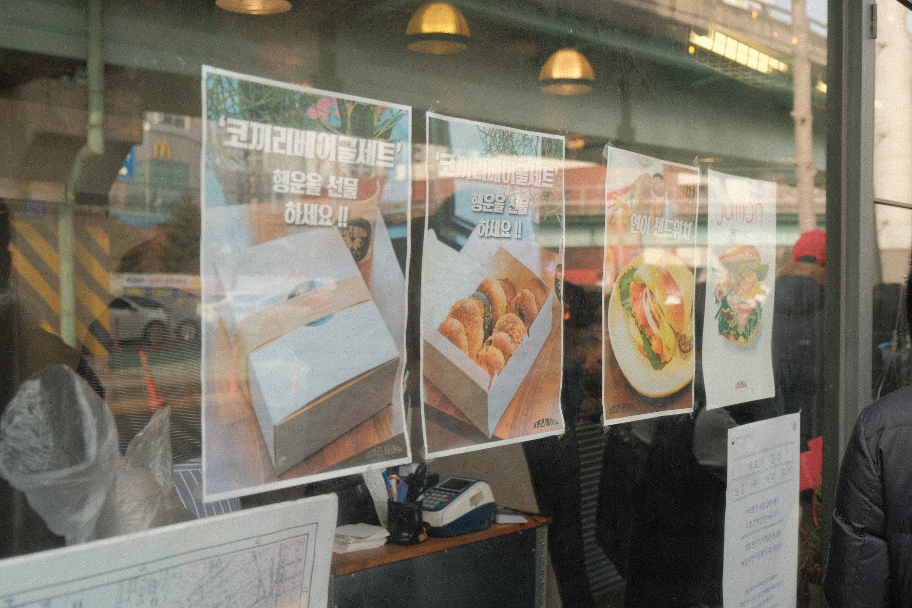 창문에는 베이글 세트와 연어 샌드위치 등의 사진이 붙어 있는데 정말 막 다 사가고 싶네요 ㅎ