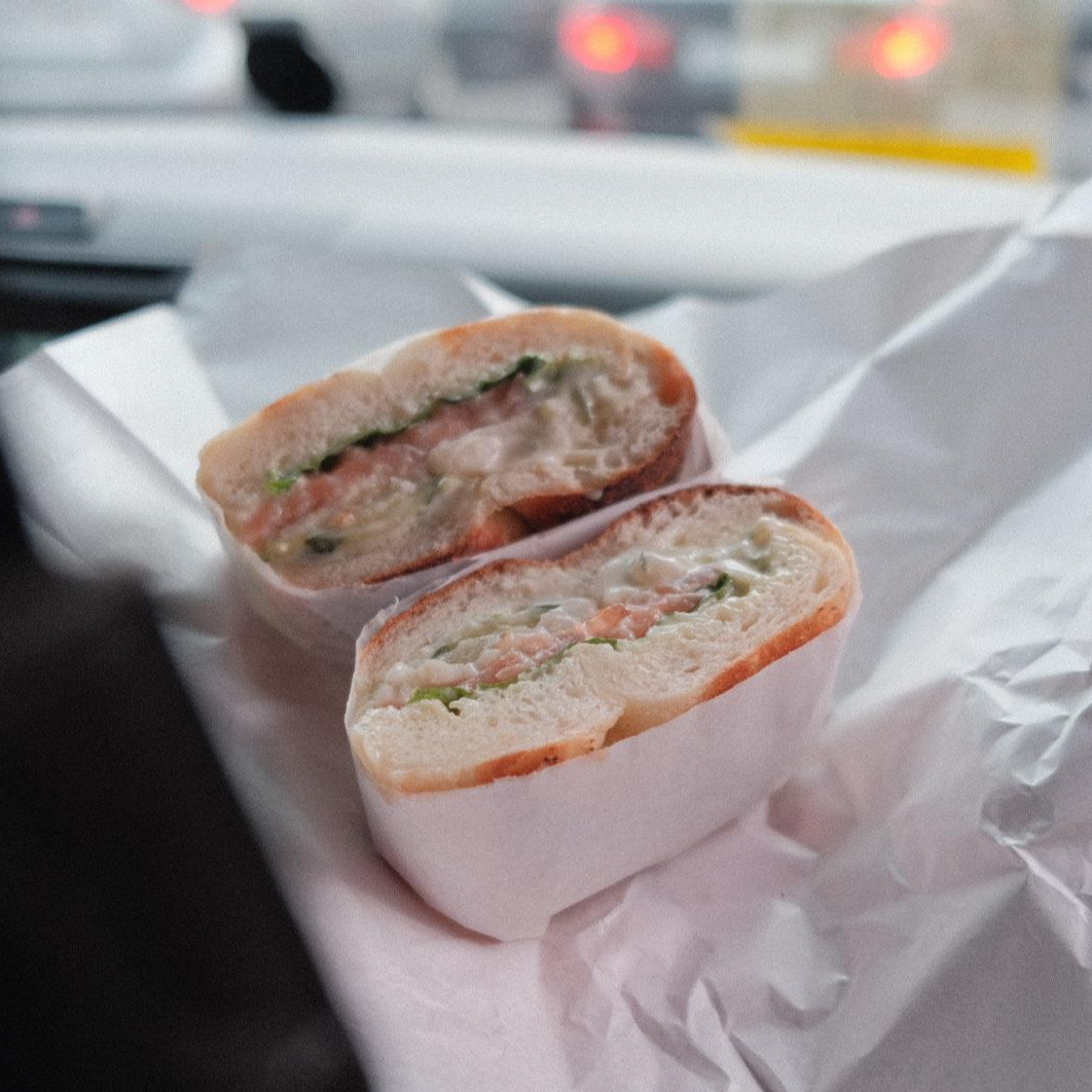 제 생각에는 베이글을 베이글 가게에서 팔고, 샌드위치는 여기서 판매하는데 공사 중이라 둘 다 베이글 가게에서 판매하는 게 아닐까 싶어요.