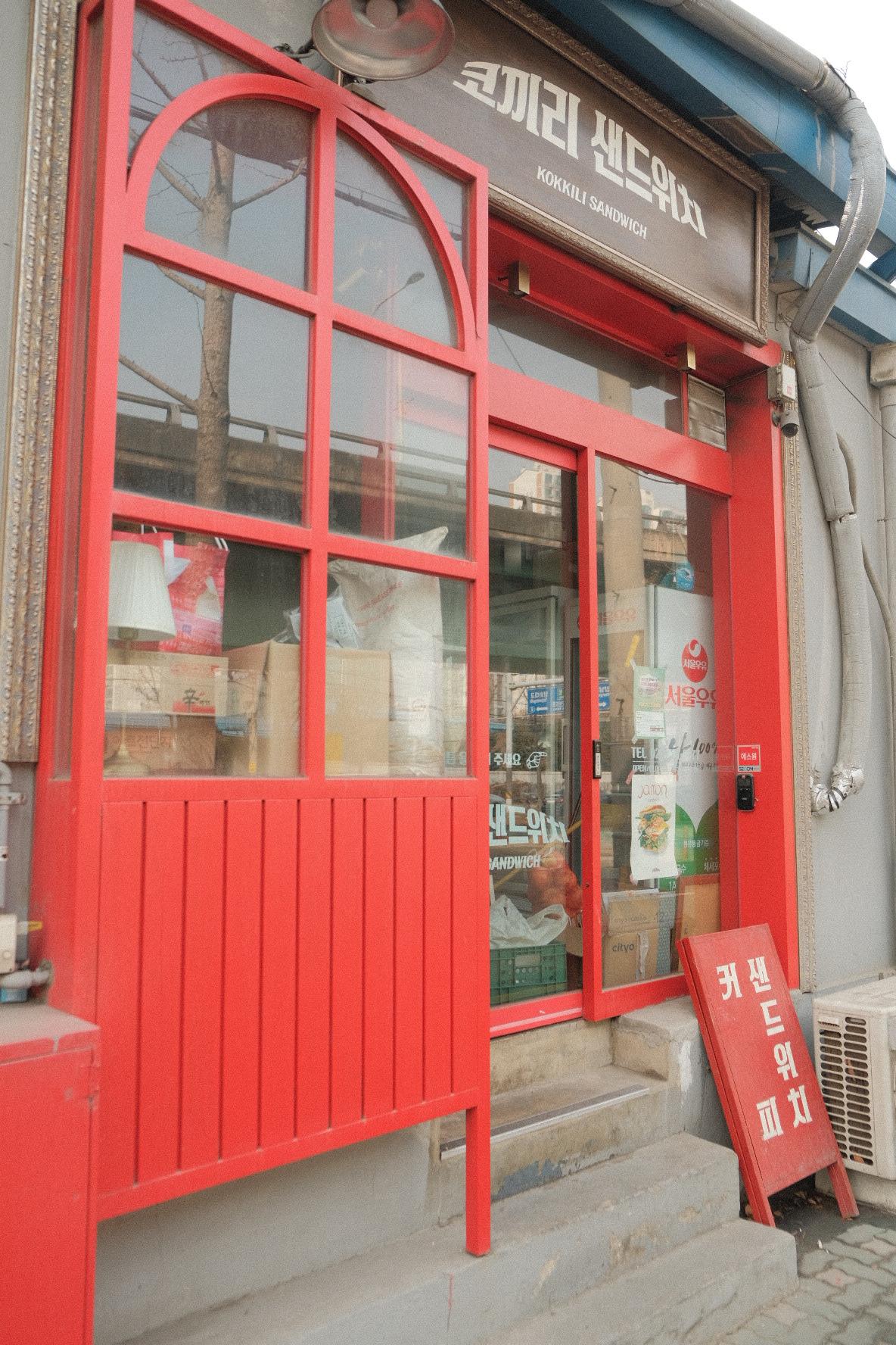 주차장으로 가는데, 중간에 빨간 외벽에 코끼리 샌드위치라는 상호의 가게가 보였어요.