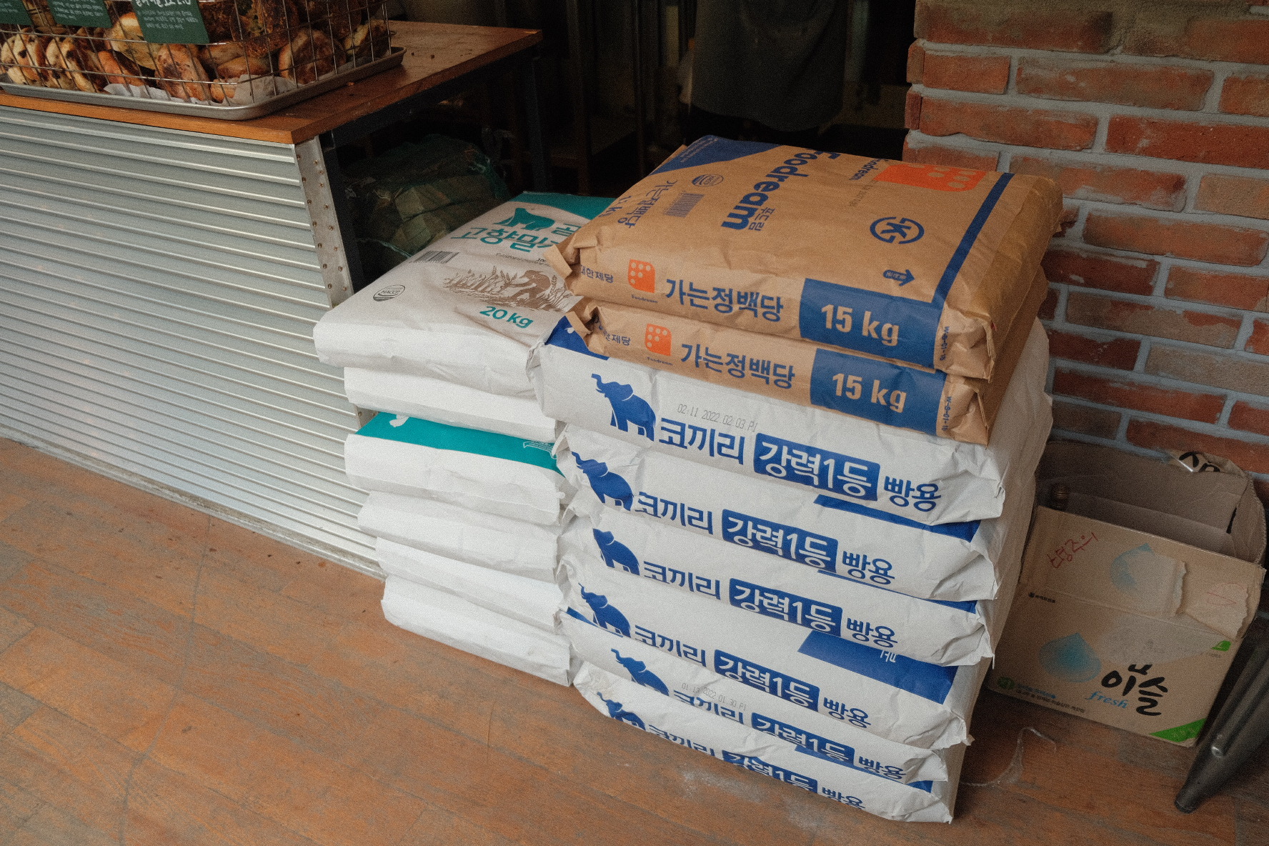 그리고 그 아래에 오늘 재료로 보이는 밀가루들이 보이네요
